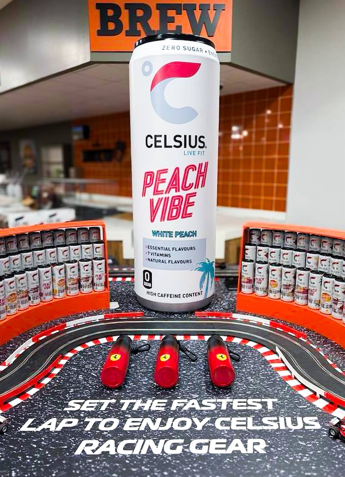 Celsius เป็นแบรนด์เครื่องดื่มเพื่อพลังงานสำหรับคนไลฟ์สไตล์แอคทีฟ แคมเปญล่าสุดของ Celsius กำลังนำบรรยากาศมอเตอร์สปอร์ตระดับโลกมาไว้ในซูเปอร์มาร์เก็ตท้องถิ่น ชื่อของแคมเปญนี้คือ Get Race Day Ready จุดประกายพร้อมลุยวันแข่งโดยพัฒนาโปรเจ็กต์ร่วมกับ Suntory Beverage & Food GB&I พาร์ทเนอร์ผู้จัดจำหน่ายในท้องถิ่น และ ZEAL เอเจนซี่ที่นำเสนอลาน Scalextric แบบอินเทอร์แอคทีฟที่ไม่เหมือนใครเพื่อท้าทายและสร้างความตื่นเต้นให้กับนักช้อป
