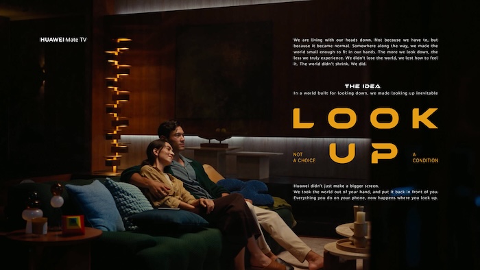 เจ้าพ่ออุปกรณ์โทรคมนาคมจีนอย่าง Huawei จับมือกับเอเจนซี่ Think & Action สร้างสรรค์แคมเปญ LOOK UP ขึ้นมาเพื่อเปลี่ยนมุมมองของผู้คนที่ติดอยู่กับการก้มหน้ามองหน้าจอโทรศัพท์ในชีวิตประจำวัน จากนั้นจึงสื่อสารความจริงที่ว่าโลกไม่ได้เล็กลง แต่เราต่างหากที่หดตัวลง เมื่อเลือกมองโลกผ่านฝ่ามือแทนที่จะสัมผัสมันอย่างแท้จริง