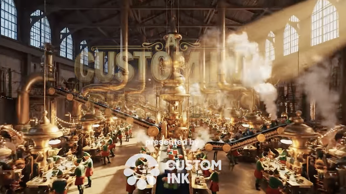Custom Ink เป็นแบรนด์ผลิตสินค้าและเสื้อผ้าพิมพ์ลายตามสั่ง ล่าสุดได้เปิดตัวสปอตโฆษณาคริสต์มาสสั้น 60 วินาทีในชื่อ “Swag Saved the Season” เพื่อเล่าถึงโมเมนต์ที่ซานต้าเริ่มโปรเจกต์ยกระดับขวัญกำลังใจทีมงานด้วย “Swag” จาก Custom Ink ไม่ว่าจะเป็นสมุดโน้ต “Sleigh Revenue Goals” หรือฮู้ดดี้พิมพ์ข้อความ “We Accept All Cookies” กลายเป็นอีกงานที่เชิดชูพนักงานเอลฟ์ว่าเป็นฮีโร่ตัวจริงเบื้องหลังคริสต์มาส