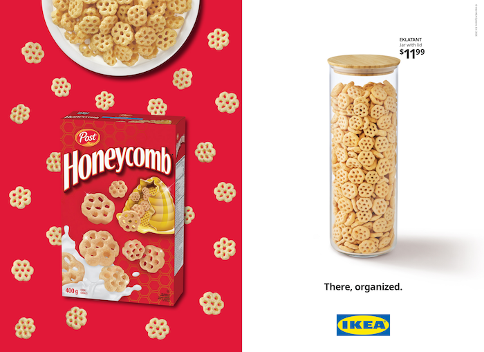 หัวใจสำคัญของแคมเปญนี้คือการนำสินค้าอุปโภคบริโภคยี่ห้อดังที่คนคุ้นเคย ไม่ว่าจะเป็น Skittles, Shreddies, Honeycomb, Maxwell House, Whippet, Wagon Wheel, Bear Paws และ Real Fruit Gummies มาใส่ในภาชนะเก็บของของ IKEA เพื่อแสดงให้เห็นว่าแม้แต่ความวุ่นวายของโลกโฆษณาก็ยังถูกจัดระเบียบได้ด้วยผลิตภัณฑ์ของ IKEA นอกจากนี้ยังมีการพลิกแพลงสโลแกนอันโด่งดังของแบรนด์ต่าง ๆ อย่างชาญฉลาด เช่น Skittles ที่เปลี่ยนเป็น “Organize the rainbow” และ Maxwell House ที่กลายเป็น “Organized to the last drop”