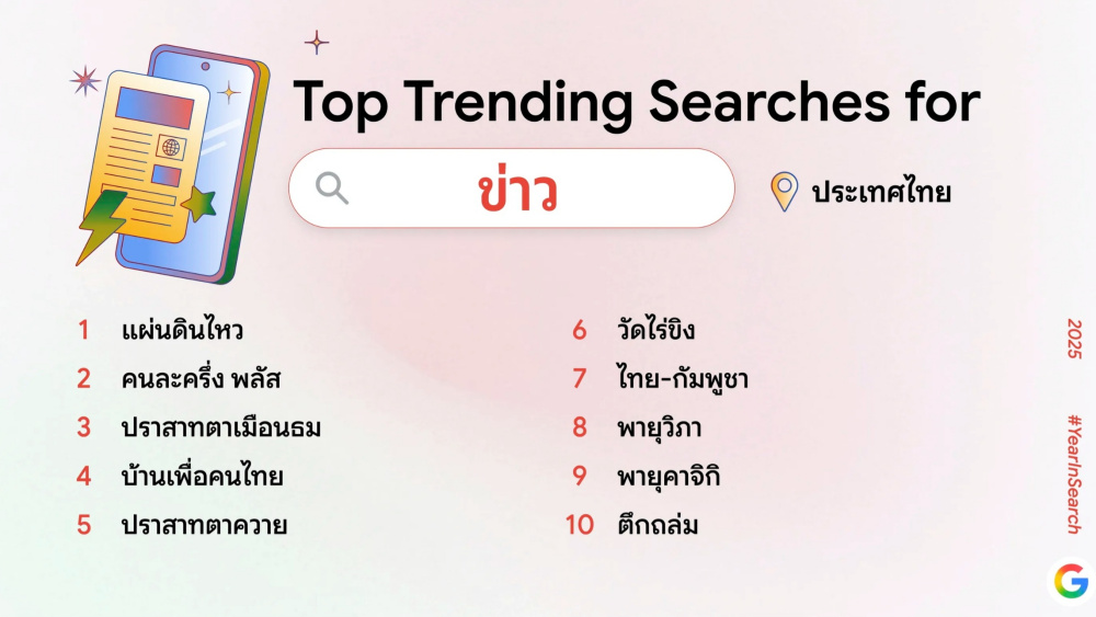 5 อันดับ “ข่าว” ที่ค้นหามากที่สุดในประเทศไทย ปี 2568