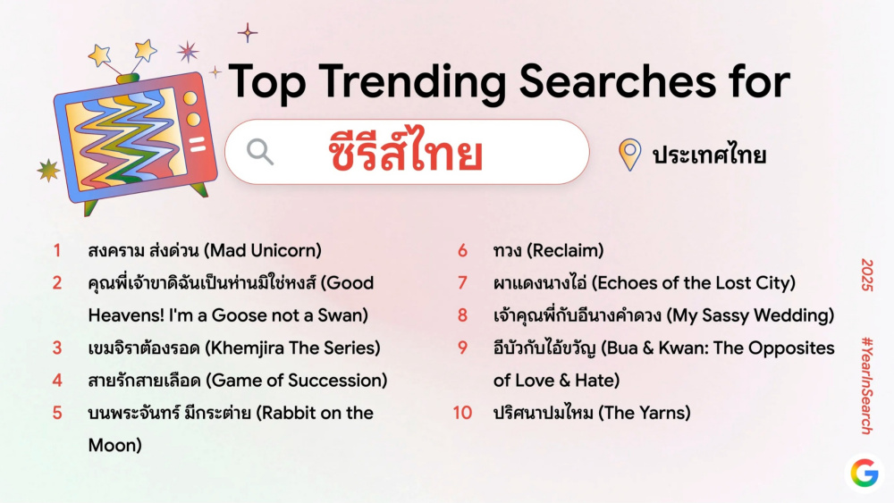5 “ซีรีส์ไทย” ที่ค้นหามากที่สุดในประเทศไทย ปี 2568