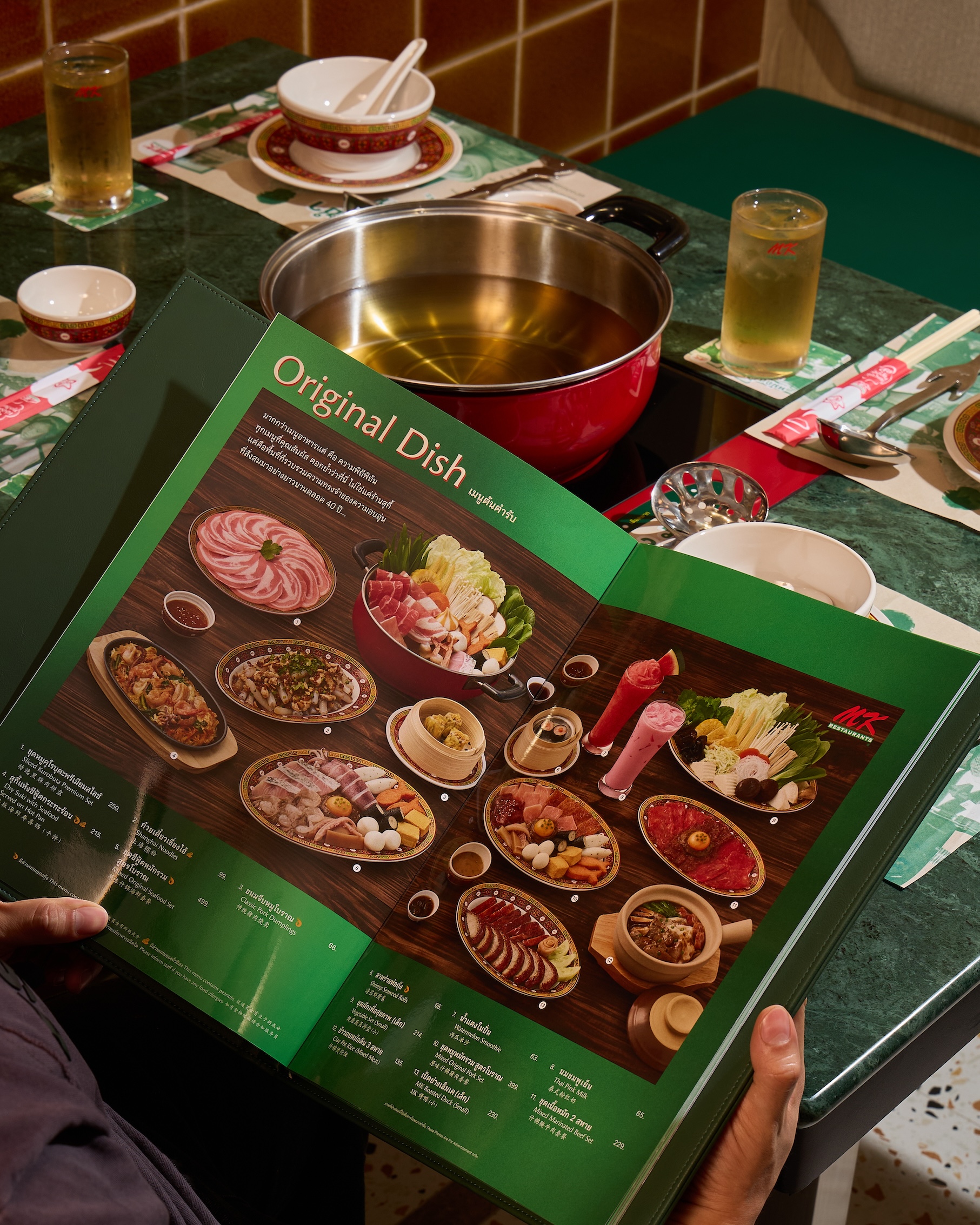 อีกหนึ่งองค์ประกอบที่ขาดไม่ได้คือการสั่งอาหารผ่านเมนูกระดาษแบบ Analog แทนระบบดิจิทัลที่ใช้ในปัจจุบัน บวกกับการให้พนักงานรุ่นแรก ๆ ของ MK กลับมาสวมชุดยูนิฟอร์มแบบดั้งเดิมและต้อนรับลูกค้า ซึ่งนี่คือการฉีกกรอบแนวคิด “Efficiency First” ของธุรกิจร้านอาหารสมัยใหม่อย่างตั้งใจ เพราะ Human Touch คือสิ่งที่ทั้ง QR Code และ Tablet สั่งอาหารไม่มีวันทดแทนได้ เพลย์ลิสต์ย้อนยุคยุค 80-90 และจานชามลายจีนแบบโบราณก็ช่วยเติมเต็มบรรยากาศให้ครบทุกมิติของประสาทสัมผัส