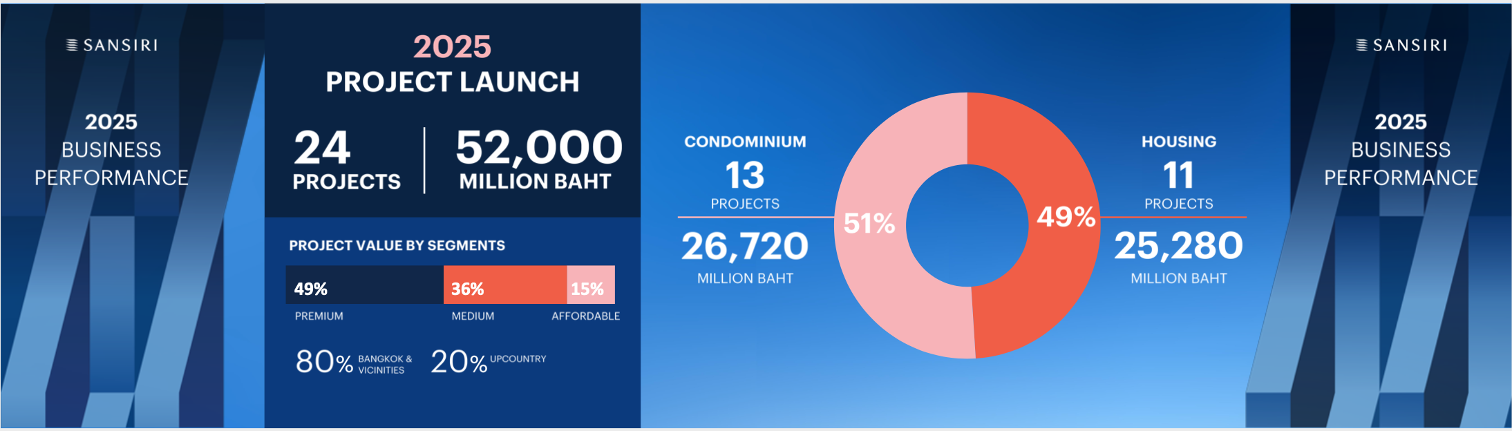 - ปี 2025: เปิด 24 โครงการ มูลค่า 52,000 ล้านบาท (เฉลี่ย 2,166 ล้านบาท/โครงการ)