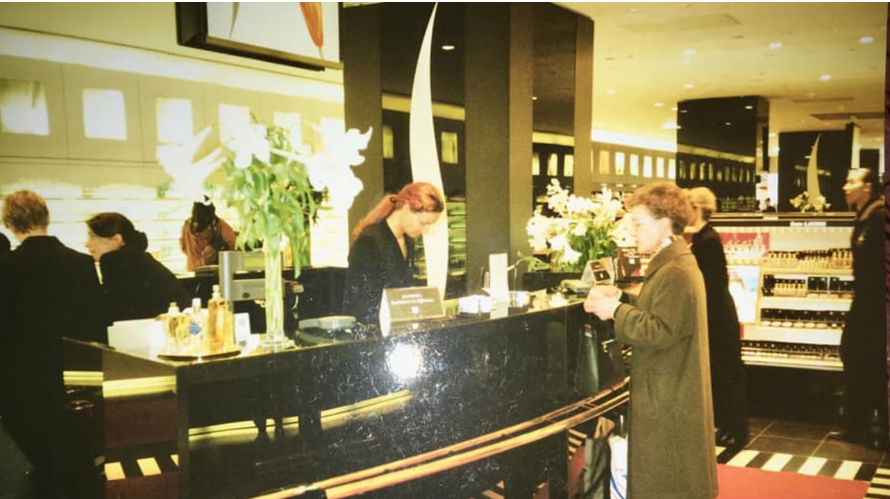 ในยุคนั้น ร้านขายเครื่องสำอางส่วนใหญ่มีรูปแบบการดำเนินธุรกิจที่สร้างความรู้สึกตึงเครียดและอึดอัดให้กับลูกค้า บรรยากาศภายในร้านมีลักษณะที่ไม่น่าอภิรมย์เท่าไหร่นัก ไม่ว่าจะเป็น การที่สินค้าถูกล็อคไว้ในตู้กระจกอย่างเข้มงวด ลูกค้าไม่สามารถสัมผัสหรือดูสินค้าได้อย่างใกล้ชิดด้วยตัวเอง พนักงานขายจับตามองลูกค้าอย่างใกล้ชิดตลอดเวลา ทำให้รู้สึกเหมือนถูกสอดส่องและไม่ไว้วางใจ บรรยากาศในร้านให้ความรู้สึกเหมือนลูกค้ากำลังถูกตัดสินและถูกประเมินอยู่ตลอดเวลา การซื้อเครื่องสำอางจึงกลายเป็นประสบการณ์ที่ไม่น่าพึงพอใจและกดดัน