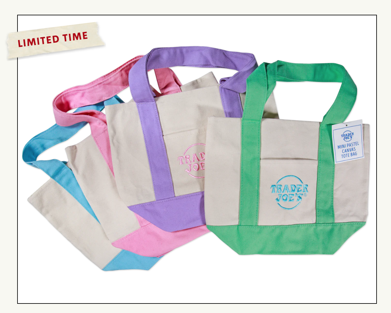 Trader Joe’s เริ่มจำหน่ายถุงผ้าแบบใช้ซ้ำได้มาตั้งแต่ปี 1977 แต่เมื่อเดือนกุมภาพันธ์ 2024 ทางร้านได้เปิดตัว Mini-tote ซึ่งสร้างกระแสไปทั่วอินเทอร์เน็ต โดยทางฝ่ายการตลาดของ Trader Joe’s ระบุว่า บริษัทได้ผลิตกระเป๋ามินิโท้ทออกมาหลายแสนใบ โดยคาดว่าจะขายได้นานหลายสัปดาห์หรือเป็นเดือน แต่ปรากฏว่าสินค้าทั้งหมดถูกกวาดเกลี้ยงแผงภายในเวลาเพียงสัปดาห์เดียว