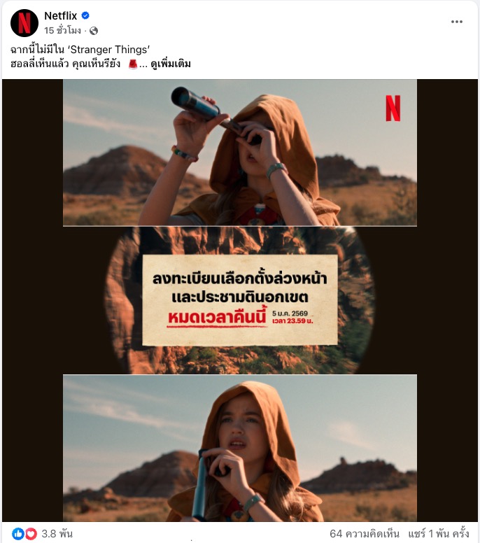 สำหรับการเลือกตั้งครั้งนี้เราก็เริ่มเห็นแบรนด์อย่าง Netflix ที่เริ่มเข้ามาจับกระแสเลือกตั้งแล้วเช่นกัน ดังนั้นโดยสรุปแล้วสำหรับแบรนด์ไทย ความเร็ว ความเข้าใจบริบท และความระมัดระวัง คือเรื่องสำคัญในการเกาะกระแสเลือกตั้ง แบรนด์ที่ทำได้ดีคือแบรนด์ที่เข้าใจว่า “คนอยากมีส่วนร่วม” แต่ไม่อยากถูกชี้นำ และเลือกใช้การเลือกตั้งสร้าง Engagement มากกว่าการสื่อสารสารทางการเมืองนั่นเอง