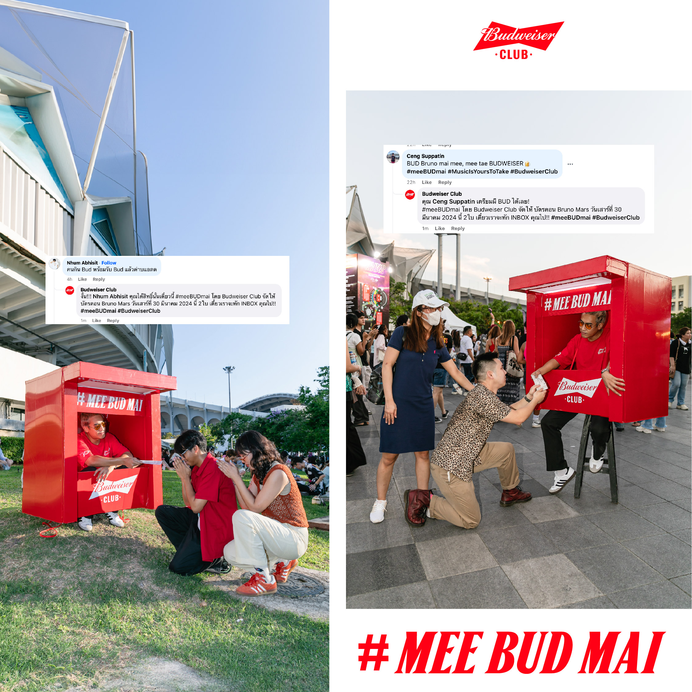 อีกหนึ่งตัวอย่างคือ แคมเปญ “มีBUDมั้ย” ให้กับ Budweiser ผ่านคอนเสิร์ต Bruno Mars ซึ่งบัตรขายหมดเกลี้ยงเลย ดังนั้นเวลาบัตรหมดคนจะพิมพ์ตามหาว่า “มีBUDมั้ย” จึงนำคำนี้มาเล่นพ้องกับชื่อแบรนด์ Bud-weiser ด้วย โดยการเล่นก็อปปี้ไรทติ้งว่า “มีBUDมั้ยถ้าไม่มีบัตรBUDมีบัตร” พร้อมกับนำไปเล่นในโซเชียลมีเดียของแบรนด์แล้วให้ผู้โชคดีมารับบัตรที่งาน แต่มากไปกว่านั้นยังทำการ Hijack moment ด้วยการมีคนใส่มาสคอตบูธครึ่งตัวเดินไปแจกบัตรที่งานเรียกความสนใจได้จากคนที่มาดูคอนเสิร์ตเป็นหมื่นๆ โดยที่ทางแบรนด์เองไม่ได้เป็นสปอนเซอร์หลักเลย และที่สำคัญคือเกิดขึ้นในบัดเจ็ทที่ถูกมาก