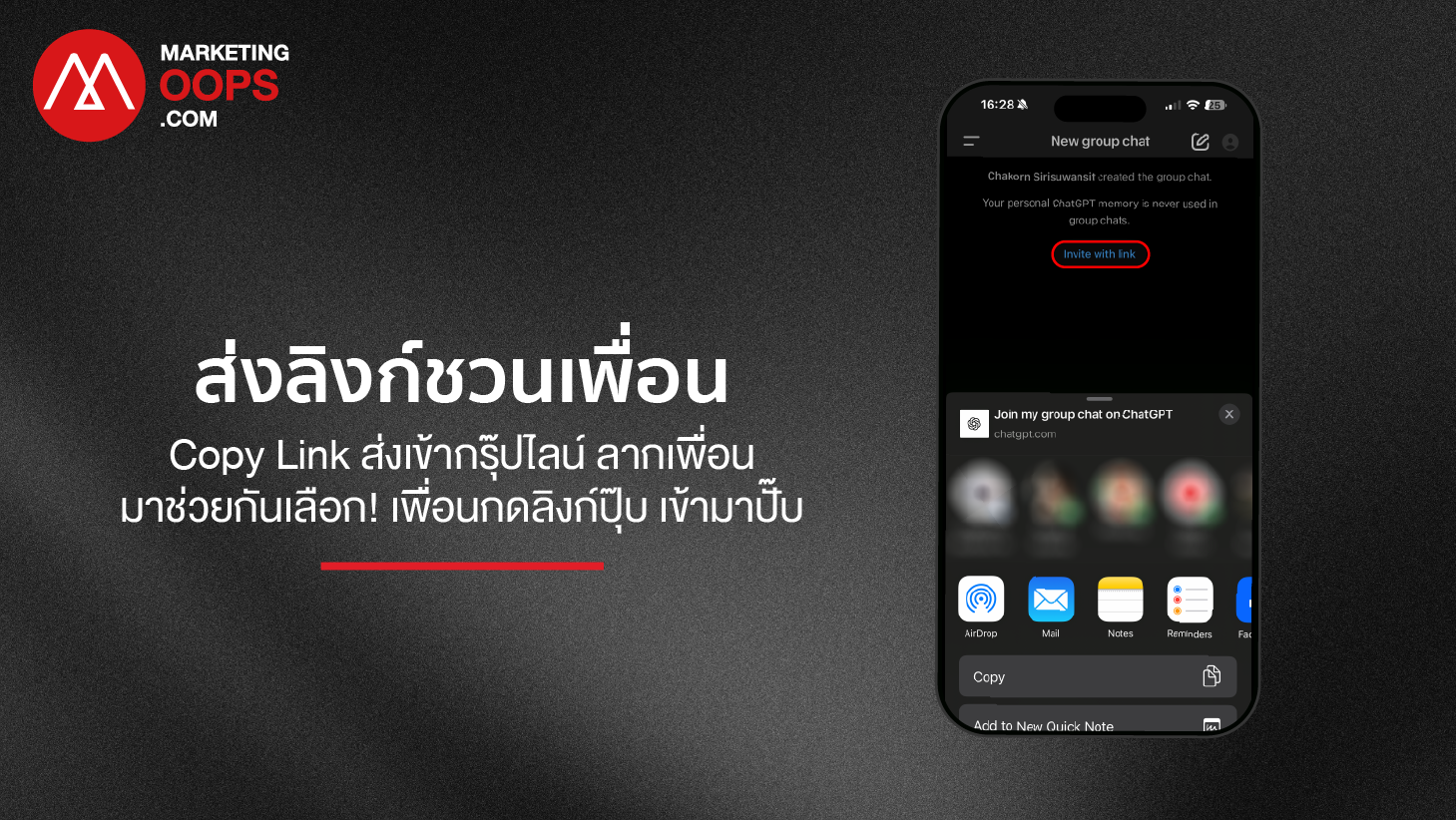- กด Copy Link แล้วส่งไปใน Line Group ของแก๊งเพื่อน