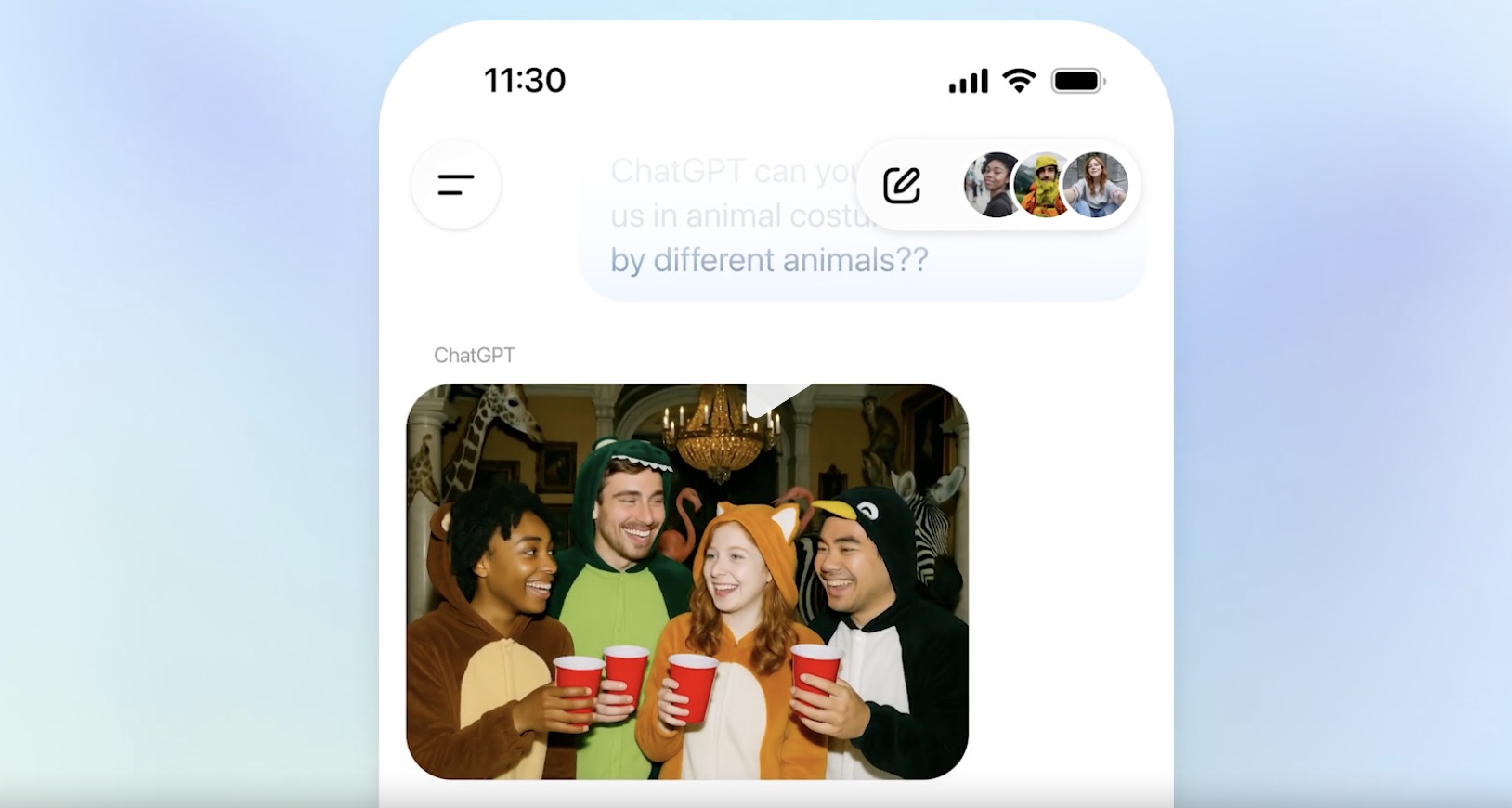- Image Generation: สามารถให้ Chat GPT สร้างภาพได้เช่นสร้างภาพจากคนในกรุ๊ปแชทใส่ชุดคอสตูมสัตว์ก็สั่งได้ง่ายๆ