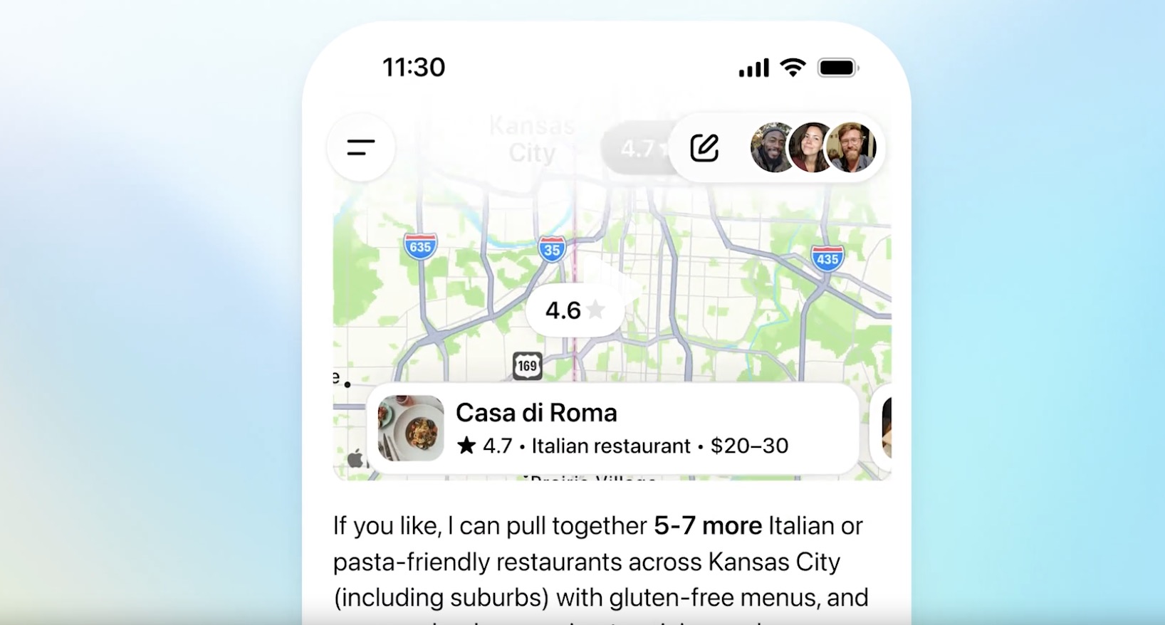 - Map Integration: นอกจากนี้ยังสามารถเข้าถึงตำแหน่งพิกัดจากแผนที่ได้ ทำให้สามารถแนะนำสถานที่ที่ต้องการจะไปได้เช่นให้ ChatGPT แนะนำร้านอาหารอิตาลีที่จะไปก็ทำได้