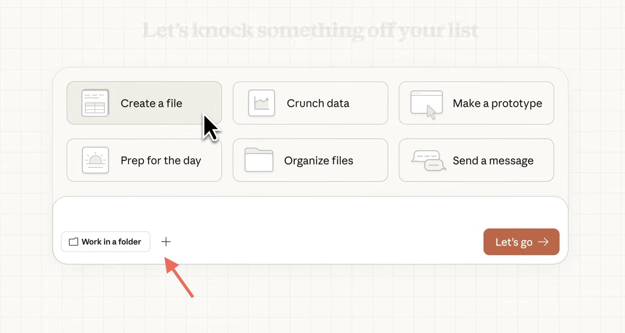 จากนั้น “เลือกโฟลเดอร์” ให้เราคลิกที่ไอคอน + เพื่อเลือกโฟลเดอร์ในคอมพิวเตอร์ที่เราจะ “อนุญาต” ให้ Claude เข้าไปทำงานได้ นี่คือข้อดีของ Cowork เพราะมันจะไม่เดินเพ่นพ่านไปทั่วระบบคอมพิวเตอร์ของเรา แต่จะทำงานเฉพาะในโฟลเดอร์ที่เรากำหนดไว้เท่านั้น ทำให้เราควบคุมความปลอดภัยและคาดเดาผลลัพธ์ได้