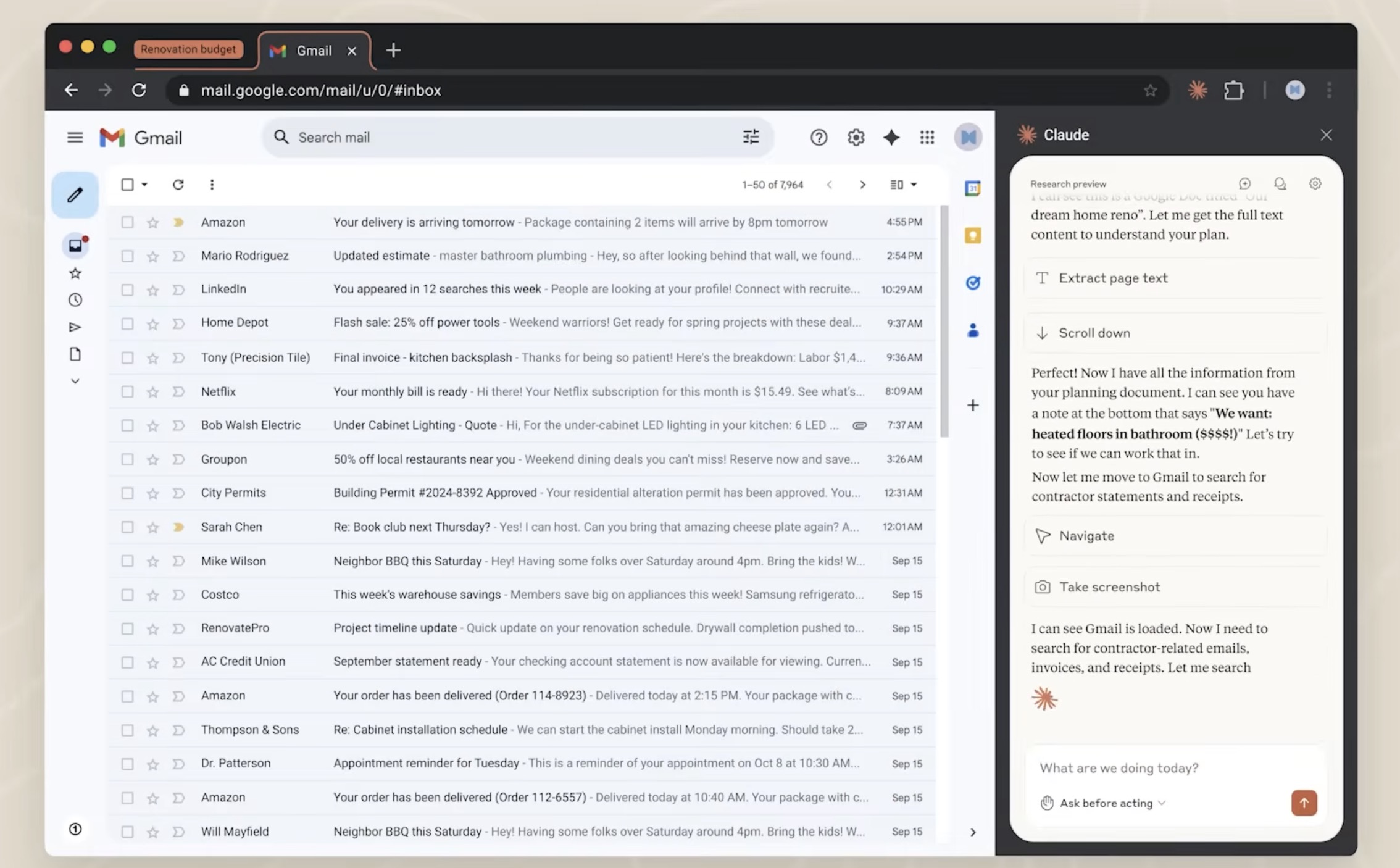 ตัวอย่างเช่น การติดตั้ง Chrome Extension คือเมื่อเราติดตั้งส่วนขยายนี้ให้ Cowork มันจะสามารถทำงานที่ต้องใช้เว็บบราวเซอร์ได้ทั้งหมด เช่น สมมติเราสั่งมันว่า “ช่วยหาที่พัก Airbnb สำหรับไปเที่ยววันหยุดสุดสัปดาห์นี้ให้หน่อย ขอสไตล์มินิมอล มีสระว่ายน้ำ”