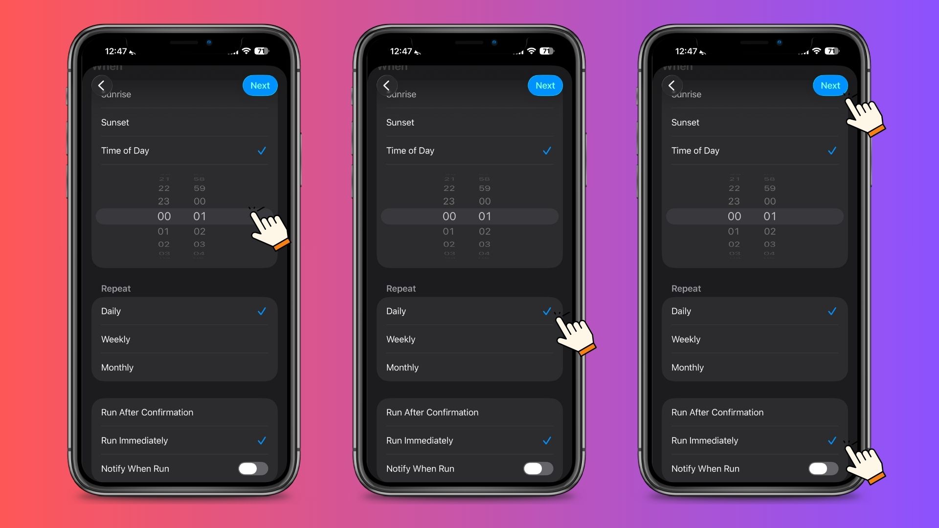 - ตั้งเวลาที่ต้องการให้ Wallpaper อัปเดต แนะนำเป็น 00:01 น. เพื่อให้ทำงานตอนเริ่มต้นวันใหม่