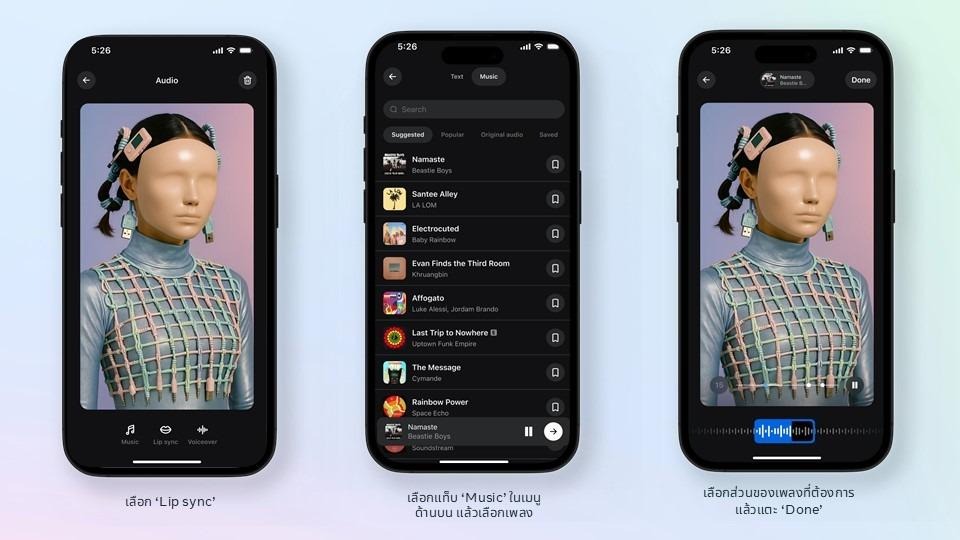 รวมไปถึงฟีเจอร์อย่าง Lip Sync ฟีเจอร์เรียกยอด Engagement ที่ให้คุณนำภาพนิ่ง (หรือภาพสัตว์เลี้ยง) มาขยับปากร้องเพลงได้ สร้างสีสันบน Reels และ Stories ได้ทันที เป็นต้น