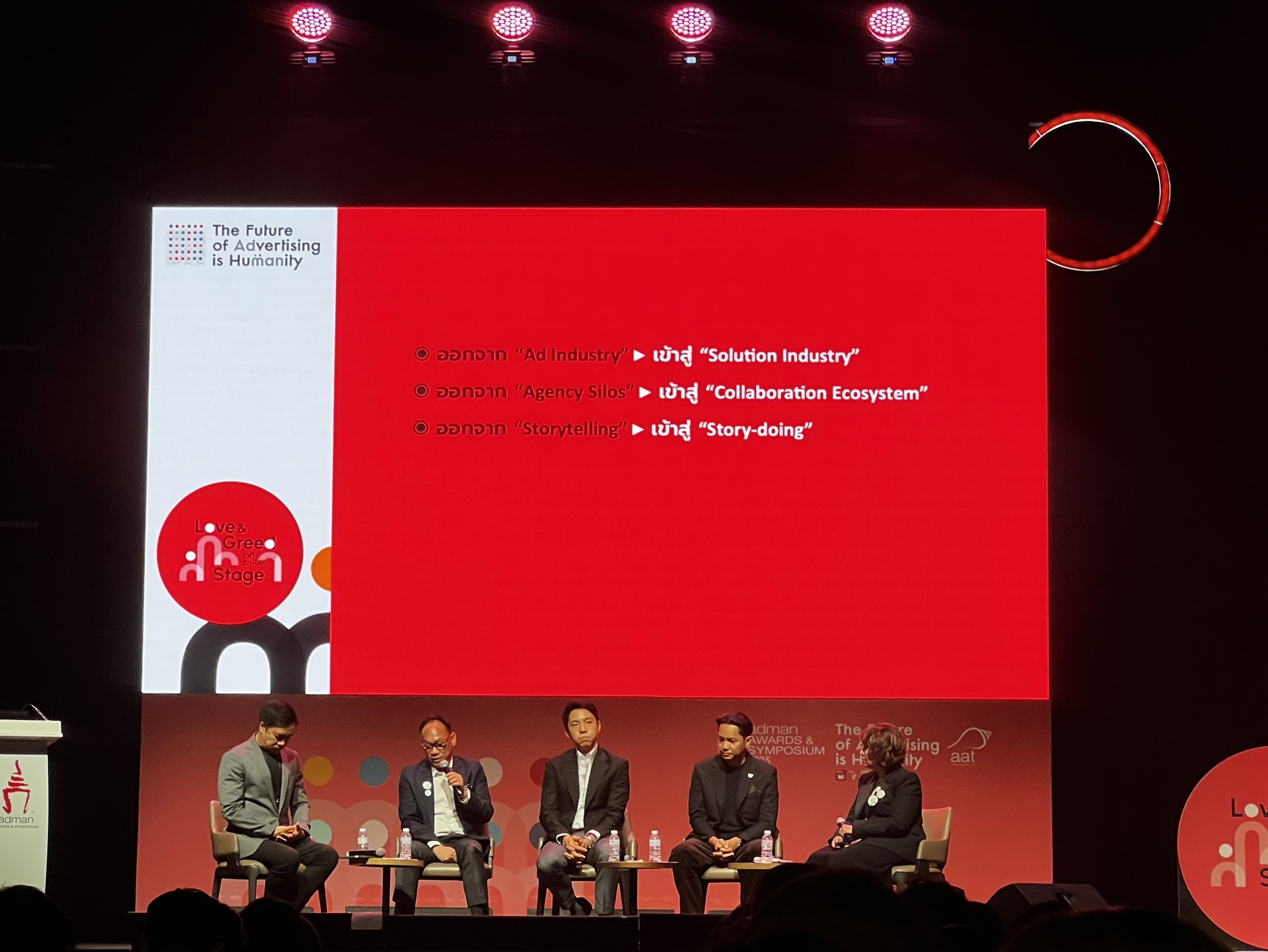 สำหรับเซสชั่นแรก เราจะพาคุณไปพบกับเซสชั่นที่คนฟังแน่นที่สุด จาก คุณรติ พันธุ์ทวี นายกสมาคมโฆษณาแห่งประเทศไทย (AAT –The Advertising Association of Thailand) , ดร. ชาคริต พิชญางกูร ผู้อำนวยการ CEA (สำนักงานส่งเสริมเศรษฐกิจสร้างสรรค์ – Creative Economy Agency) , คุณภารุจ ดาวราย นายกสมาคมผู้ผลิตสื่อโฆษณาและดิจิทัล (DAAT) และ CEO/Founder Lateral และ คุณภวัต เรืองเดชวรชัย นายกสมาคมมีเดียเอเยนซี่และธุรกิจสื่อแห่งประเทศไทย (MAAT) และ CEO MI GROUP ภายใต้หัวข้อ “ธุรกิจโฆษณาจะไปกันยังไงต่อ?” (The Ad. Industry: Is it still a lucrative business?) เราสรุปใจความสำคัญบทสนทนาไว้ให้คุณแล้ว