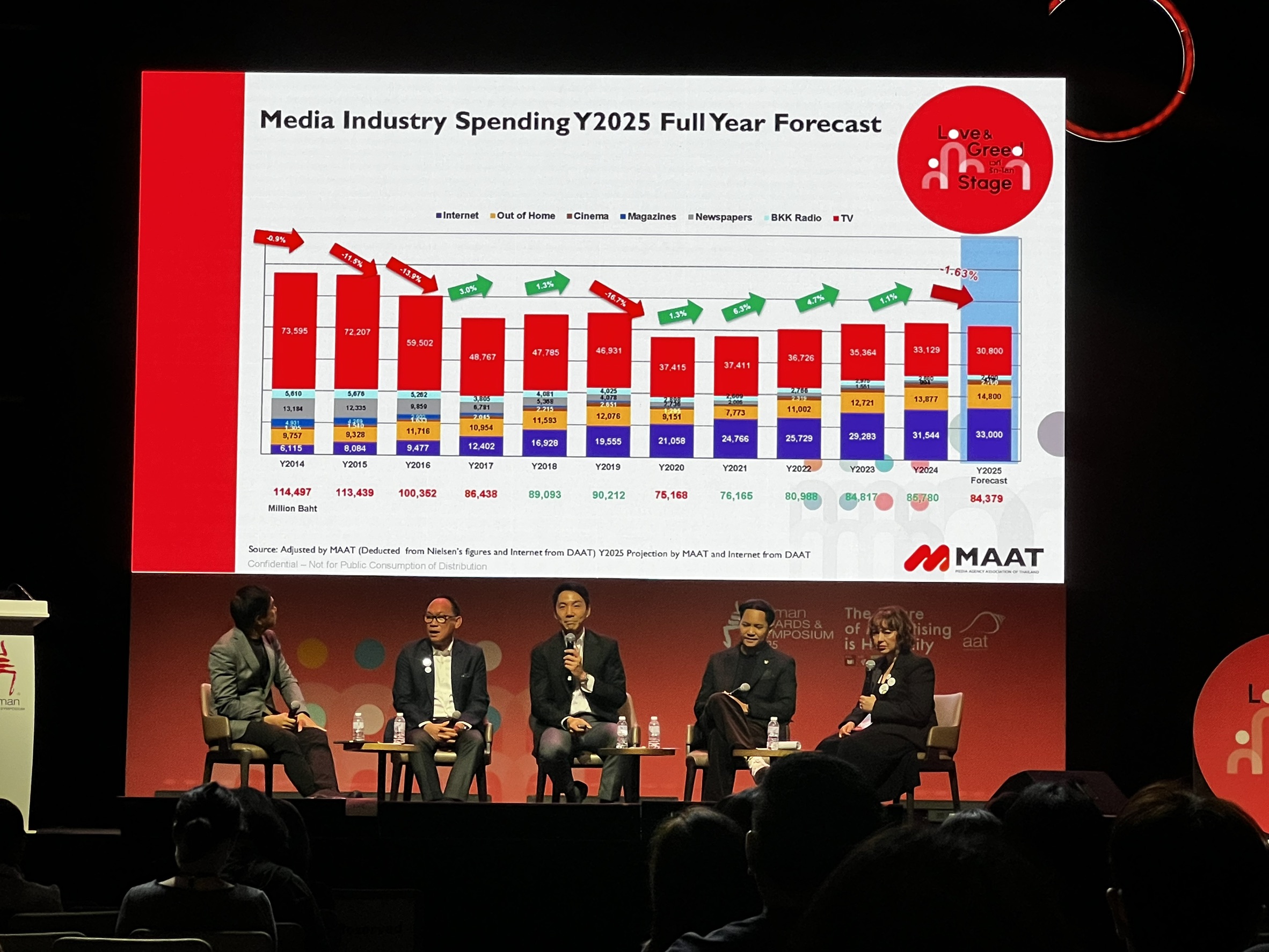 ตัวเลขที่เผยแพร่ออกมานั้นไม่ได้สะท้อนภาพรวมที่แท้จริงของอุตสาหกรรม เนื่องจากการใช้จ่ายบนแพลตฟอร์มออนไลน์และโซเชียลมีเดียจำนวนมหาศาลไม่ได้ถูกจัดเก็บอย่างเป็นทางการ โดยเฉพาะกลุ่ม SME และแบรนด์ต่างๆ ที่เลือกยิงโฆษณาเองผ่านระบบ self-service ของแพลตฟอร์มดิจิทัล หากนำเม็ดเงินส่วนนี้มารวมคำนวณด้วย ตัวเลขรวมทั้งหมดอาจสูงถึง 107,000 ล้านบาท หรืออาจมากกว่า 120,000 ล้านบาทด้วยซ้ำ ซึ่งหมายความว่าเม็ดเงินโฆษณาไม่ได้หายไปไหน แต่กำลัง “ย้ายที่” ไปสู่ช่องทางใหม่ที่สอดคล้องกับพฤติกรรมผู้บริโภคในยุคปัจจุบัน