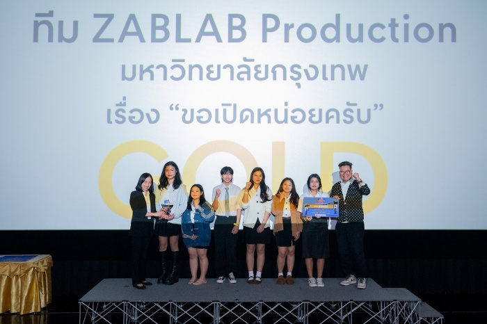 รางวัล GOLD PRIZE ได้แก่ทีม ZABLAB Production มหาวิทยาลัยกรุงเทพ จากผลงาน “ขอเปิดหน่อยครับ” รับชม (https://youtu.be/q7m7xOvn4uA)