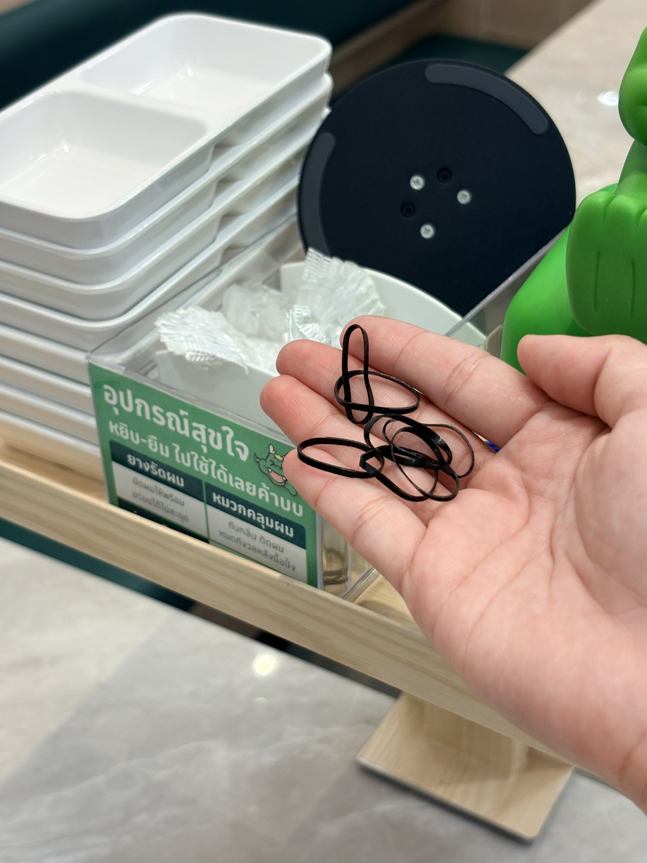 ไม่ว่าจะเป็นที่วางมือถือที่ไม่ล้ม, หมวกคลุมผมที่แจกฟรี, เก้าอี้เด็กที่ออกแบบมาหลายรูปแบบตามช่วงวัย หรือสเปรย์กำจัดกลิ่นที่ให้ใช้ฟรีทุกสาขา ทั้งหมดนี้ไม่มีชิ้นไหนโดดเด่นพอจะสร้างไวรัลได้ด้วยตัวเอง แต่เมื่อรวมกันแล้ว มันสร้างภาพจำว่านี่คือ “ร้านที่คิดแทนเราเสมอ”