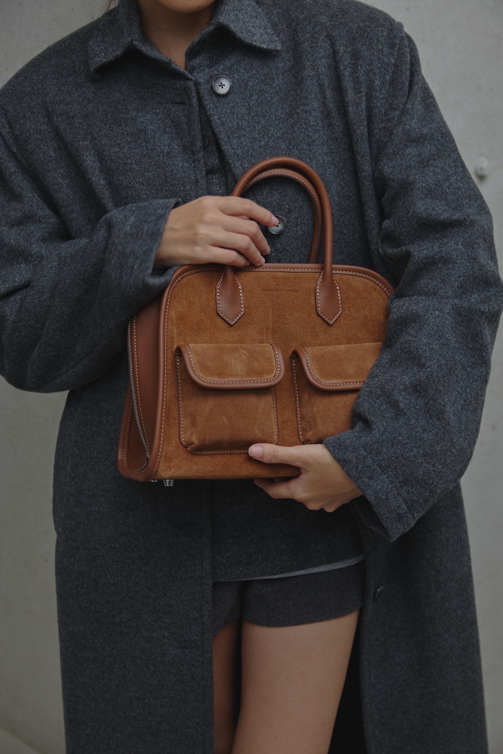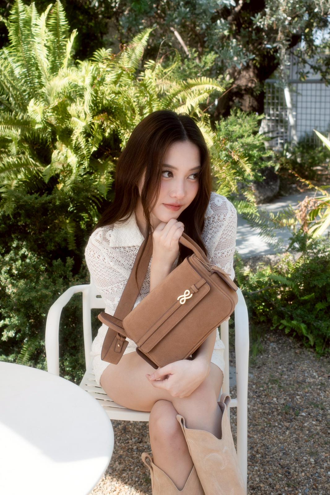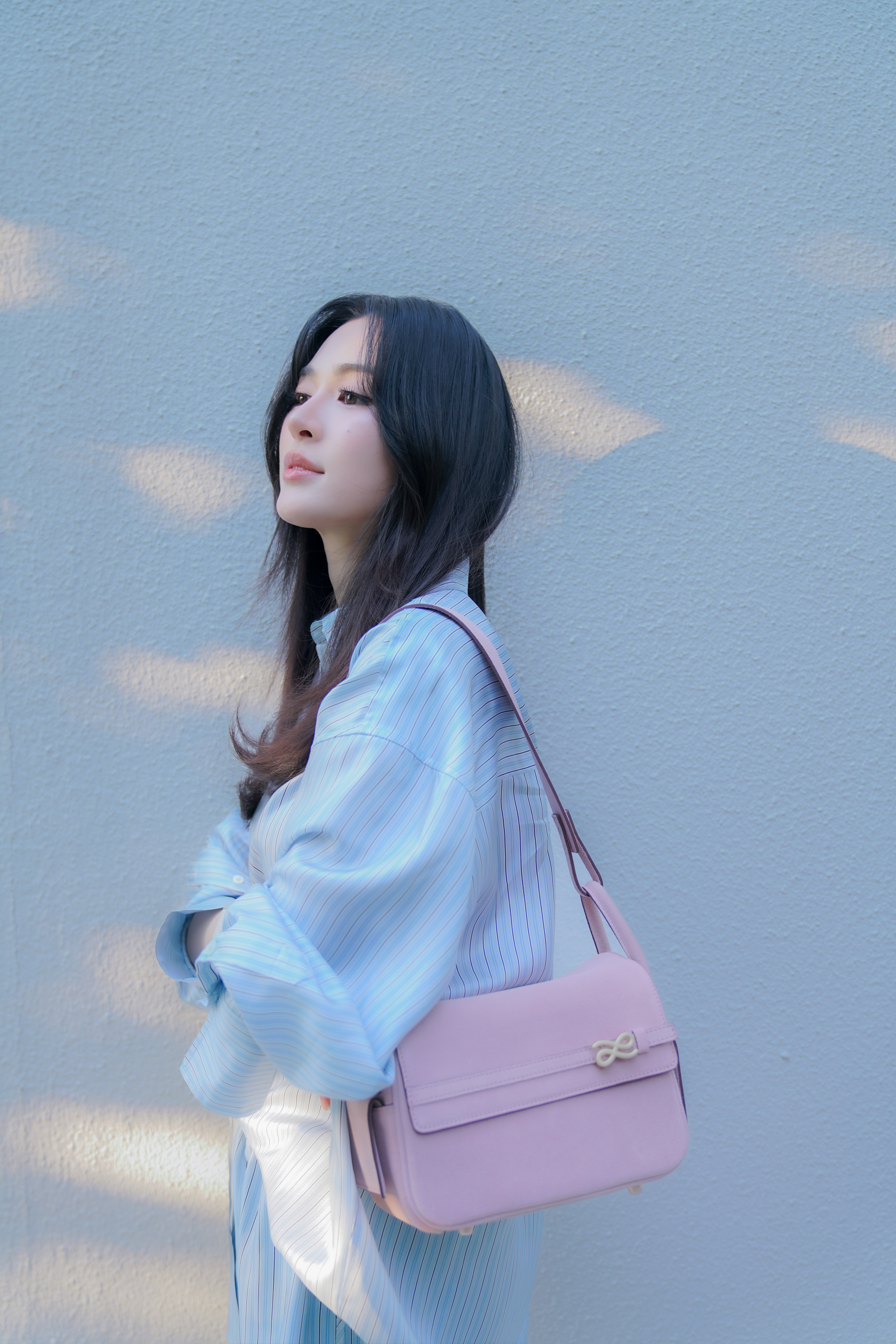 - คุณหลิงหลิง ศิริลักษณ์ ที่ยกระดับลุคเสื้อเชิ้ตโอเวอร์ไซส์ด้วยกระเป๋า TREASURE BELT SUEDE สี LITTLEBUNNY PINK