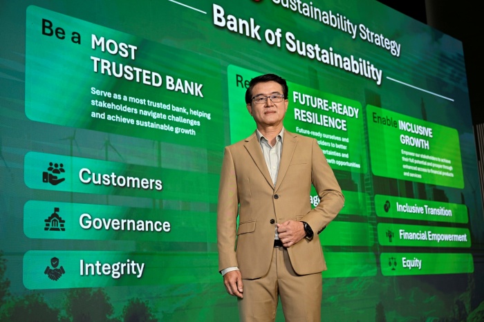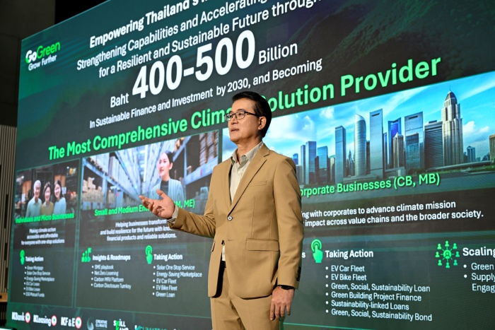 ธนาคารได้เพิ่มเป้าหมายเม็ดเงินเพื่อความยั่งยืนจากเดิม 1–2 แสนล้านบาท เป็น 4–5 แสนล้านบาท ภายในปี 2573 พร้อมเดินหน้าสนับสนุนสินเชื่อและการลงทุนเพื่อสร้างความเปลี่ยนแปลงแก่สังคมและขับเคลื่อนไปสู่เศรษฐกิจคาร์บอนต่ำอย่างจริงจัง