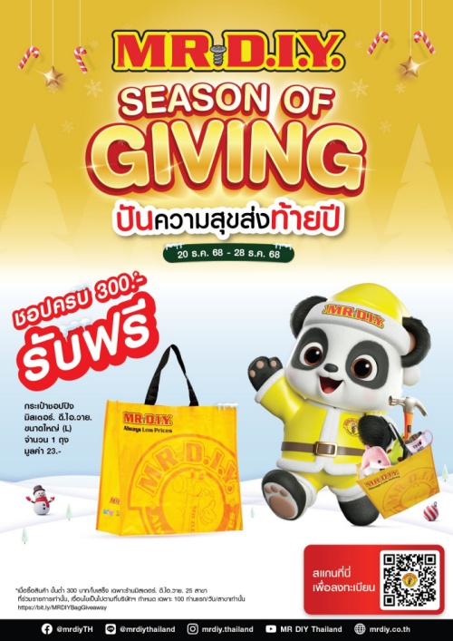 การอัดโปรโมชันลดราคาอาจไม่ใช่ทางเลือกที่ดีที่สุดเสมอไป แต่เป็นการวางตัวเองให้เข้าไปอยู่ในทุก “จังหวะ” ของผู้บริโภคคือจุดสำคัญมากกว่า นั่นคือแนวคิดที่ “มิสเตอร์. ดี.ไอ.วาย. (MR. D.I.Y.)” ส่งแคมเปญใหญ่ที่จัดต่อเนื่องเป็นปีที่ 3 อย่าง “Season of Giving ปันความสุขส่งท้ายปี” ในช่วงเทศกาลแห่งการให้