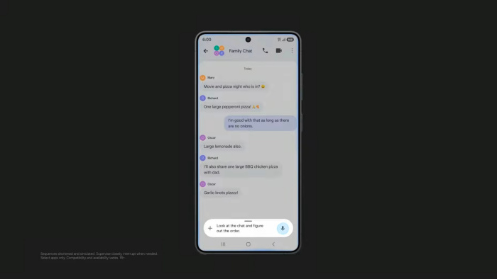 ไม่เพียงเท่านี้ ระบบ AI ยังลงลึกการทำงานในรูปแบบ Cross-App Actions ผ่านการทำงานร่วมกับ Google Gemini ยกตัวอย่างกำลังนั่งคุยกับเพื่อนในออฟฟิศผ่าน LINE เพื่อสั่งอาหารที่ความต้องการของแต่ละคนแตกต่างกันอย่างสุดขั้ว แทนที่ต้องมานั่งจดแล้วยังต้องสลับหน้าจอกดสั่งในแอปฯ Delivery แค่ให้ Gemini เข้าไปสรุปออเดอร์ในแชท พร้อมสั่งออเดอร์และชำระเงิน โดยที่ไม่ต้องเสียเวลาสลับแอปฯ ไปมา