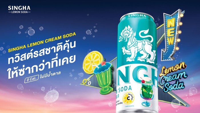 สำหรับ ‘สิงห์ เลมอนครีมโซดา’ เครื่องดื่มรสชาติใหม่ที่จะ ‘ทวิสต์รสชาติคุ้น ให้ซ่ากว่าที่เคย’ มาพร้อมแพ็กเกจสีฟ้าอมเขียว สร้างความโดดเด่นและสีสันส่งท้ายปี วางขายในรูปแบบกระป๋องขนาด 330 มล. พร้อมให้ทุกคนได้ลองแล้ววันนี้ในเซเว่นอีเลฟเว่น, ห้างสรรพสินค้า และซูเปอร์มาร์เก็ตทั่วประเทศ