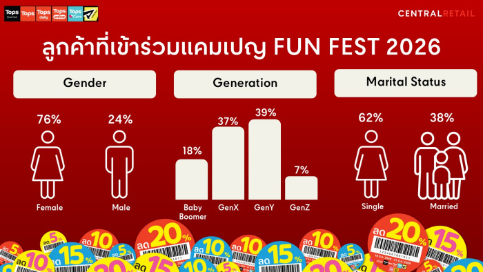 - ยอดขายรวมในแคมเปญ TOPS Fun Fest เติบโตกว่า 20% เมื่อเทียบกับปี 2024