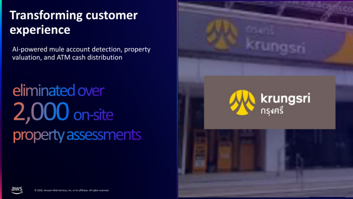 - Financial Services: กลุ่มธุรกิจการเงินและธนาคารที่กำลังเกิดความท้าทาย โดย AWS จะเข้าไปช่วยตั้งแต่ Core Banking Modernization, การรับมือกับ Virtual Bank ที่กำลังจะเกิดขึ้น ไปจนถึงกระบวนการทำงานของธุรกิจ และระบบป้องกันการหลอกลวงที่ต้องใช้ AI เข้ามาตรวจจับเพื่อให้เท่าทันกับอาชญากรที่เชี่ยวชาญเทคโนโลยี