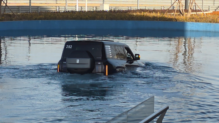 การเดินทางในสนามทดสอบสิ้นสุดลงที่ 2 ฐานสุดท้ายที่จำลองความโหดร้ายของธรรมชาติ โดยฐานแรกคือ สระน้ำจำลอง ที่ระดับน้ำสูงท่วมฝากระโปรงรถ EV ของ BYD ภายใต้ความลึกระดับ 2 เมตร ตัวรถจะค่อยๆ เคลื่อนตัวลงน้ำ ล้อลอยเหนือพื้น แต่รถยังคงเคลื่อนที่และบังคับทิศทางได้เหมือนเรือ ด้วยการออกแบบห้องโดยสารและแบตเตอรี่ที่ปิดผนึกอย่างแน่นหนา แบบไม่มีน้ำเข้า