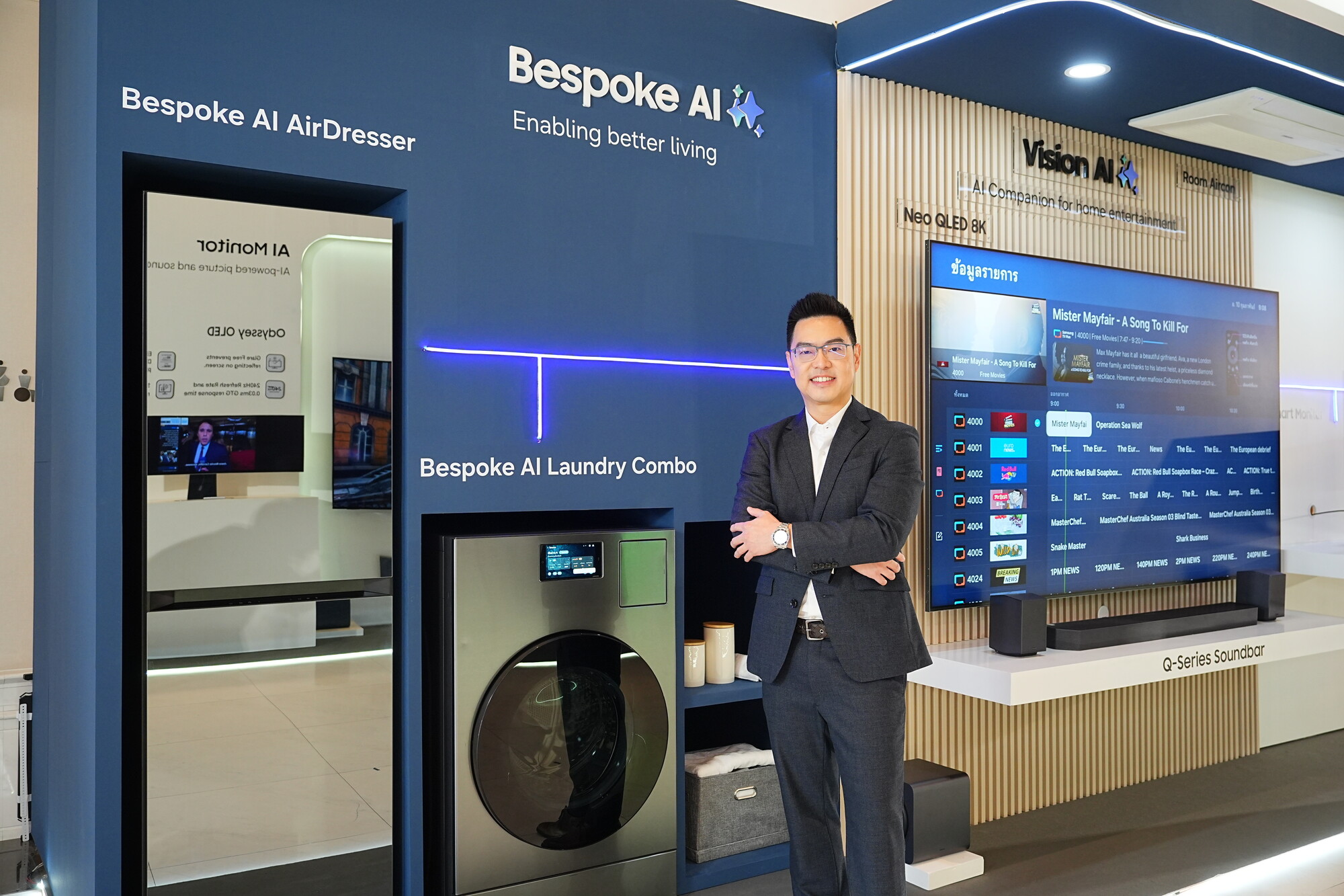 คุณสารัช อักษราลิขิตสันติ ผู้อำนวยการกลุ่มธุรกิจเครื่องใช้ไฟฟ้าภายในบ้าน ยกตัวอย่างความอัจฉริยะของ Bespoke AI Laundry Combo เครื่องซัก-อบผ้าที่ไม่ต้องมานั่งเดาว่าผ้ากองนี้ต้องใส่น้ำยาแค่ไหน AI จะชั่งน้ำหนัก วิเคราะห์ความสกปรก แยกชนิดผ้า และจัดการเติมน้ำยาซักผ้า/น้ำ ในปริมาณที่เป๊ะที่สุดให้เอง