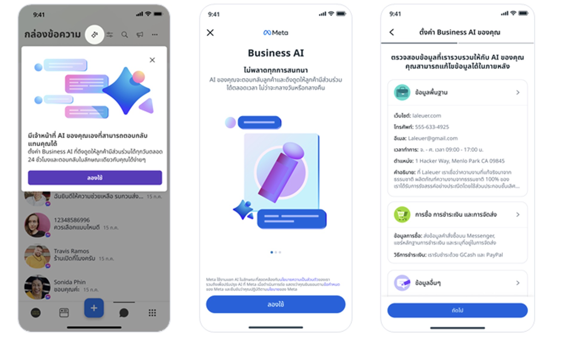ถือเป็นหนึ่งในฟีเจอร์ที่คนทำธุรกิจและพ่อค้าแม่ค้าออนไลน์บนแพลตฟอร์ม Facebook รอคอยกันมานาน กับ Business AI ที่ Meta เกริ่นมาให้คนไทยได้ทราบกันมาตั้งแต่ปี 2024ล่าสุด Meta ประกาศเปิดตัว Business AI บน Messenger ในประเทศไทยอย่างเป็นทางการแล้ว โดยประเทศไทยยังเป็นประเทศแรกๆ ในโลกที่ได้ใช้ฟีเจอร์นี้พร้อมกับฟิลิปปินส์