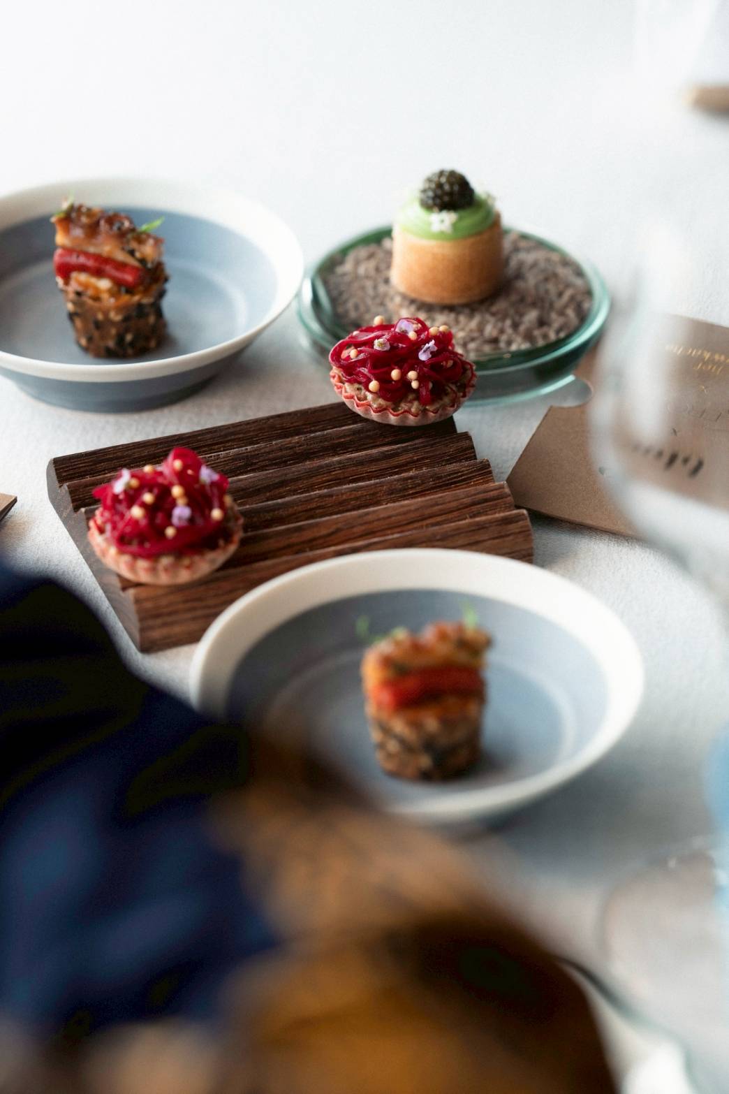 6-Hands Experience ครั้งนี้นำเสนอเป็น 6-Course Tasting Menu ที่ออกแบบขึ้นเป็นพิเศษ รังสรรค์ทุกจานผ่านบทสนทนาอันเปี่ยมความหมาย นำเสนออย่างพิถีพิถันในลำดับที่สลับกันอย่างลงตัว สะท้อนให้เห็นเอกลักษณ์อันเปล่งประกายแบบเฉพาะตัวของเชฟแต่ละท่าน ขณะเดียวกันก็ยังคงเรื่องราวที่ไหลลื่นเป็นหนึ่งเดียว เริ่มด้วย Trio of Canapés คานาเป้สามคำที่เชฟแต่ละท่านรังสรรค์ขึ้นคนละคำ ตามด้วย Amuse-Bouche ซิกเนเจอร์เมนูของ Blue และเมนูที่ใช้หอยเม่นทะเล เพื่อสะท้อนตัวตนและปรัชญาอาหารฝรั่งเศสของ Blue by Alain Ducasse