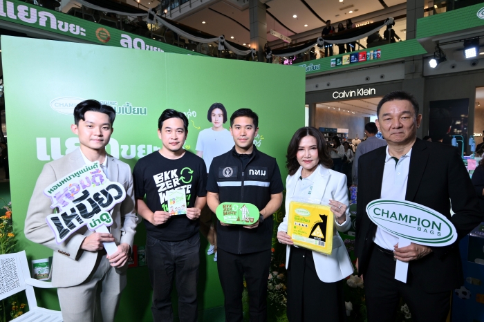 นอกจากนวัตกรรมผลิตภัณฑ์แล้วถุงขยะแชมเปี้ยนยังให้ความสำคัญกับพันธกิจด้านสิ่งแวดล้อมอย่างต่อเนื่อง โดยแบรนด์ได้รณรงค์และทำแคมเปญเกี่ยวกับการ แยกขยะ = ลดขยะ มาอย่างต่อเนื่องเป็นปีที่ 6 พร้อมร่วมเป็นภาคีเครือข่ายมือวิเศษกรุงเทพ และสนับสนุนโครงการ “บ้านนี้ไม่เทรวม” ของกรุงเทพมหานคร ซึ่งเป็นไปตามค่านิยมของคนรุ่นใหม่ที่เห็นคุณค่าของความยั่งยืน โดยในงานเปิดตัวพรีเซนเตอร์ครั้งนี้ ยังมีการจัดช่วงเสวนา “แชมเปี้ยนทอล์ค บ้านนี้ไม่เทรวม จุดเปลี่ยนการแยกขยะกรุงเทพ” โดยได้รับเกียรติจาก นายพรพรหม วิกิตเศรษฐ์ ที่ปรึกษาของผู้ว่าราชการกรุงเทพมหานคร ผู้ขับเคลื่อนนโยบายด้านความยั่งยืน พร้อมด้วย นายเมธา เสนทอง ผู้ประสานงานภาคีมือวิเศษกรุงเทพ และนายกฤทธิ์ ดนุเดชสกุล ผู้จัดการฝ่ายพัฒนาธุรกิจ มาร่วมพูดคุยเพื่อให้ข้อมูลและทำความเข้าใจเกี่ยวกับนโยบาย “บ้านนี้ไม่เทรวม: แยกขยะลดค่าธรรมเนียม” รวมถึงการประชาสัมพันธ์ Application BKK WASTE PAY ให้กับคนรุ่นใหม่ที่มาร่วมงานได้รับฟังอีกด้วย