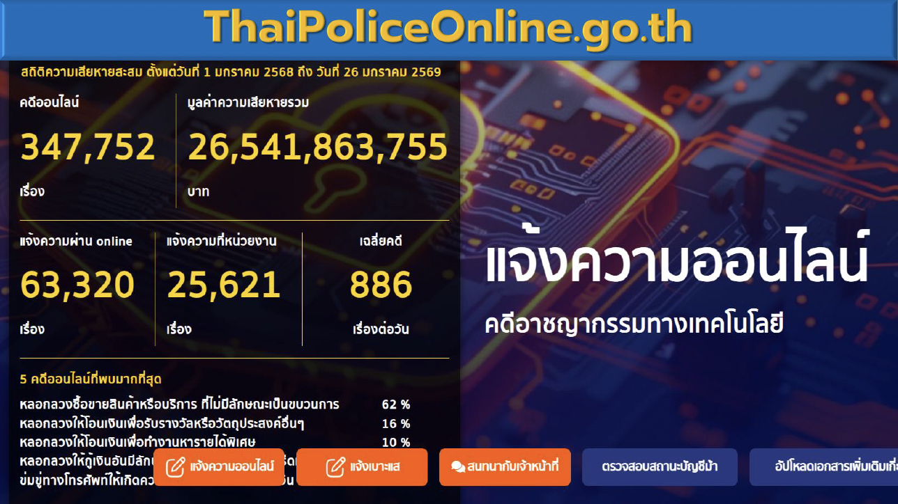 พล.ต.ต.นิเวศน์ อาภาวศิน รองผู้บัญชาการตำรวจสืบสวนสอบสวนอาชญากรรมทางเทคโนโลยี ระบุว่า ปัจจุบันมีข้อมูลส่วนบุคคลรั่วไหลทั่วโลกกว่า 26,000 ล้านรายการ โดยข้อมูลเหล่านี้ถูกนำไปใช้ต่อยอดการหลอกลวงในรูปแบบต่าง ๆ ตั้งแต่การข่มขู่ให้โอนเงินคริปโต การสวมรอยเป็นบุคคลหรือองค์กร ไปจนถึงการขายข้อมูลในตลาดมืด และจากสถิติของ CCIB พบว่า ประเทศไทยมีคดีออนไลน์ที่แจ้งความแล้วกว่า 347,752 คดี คิดเป็นมูลค่าความเสียหายรวมกว่า 26,541 ล้านบาท (ข้อมูลตั้งแต่ 1 ม.ค. 2568 ถึง 26 ม.ค. 2569) โดยมิจฉาชีพนิยมใช้โซเชียลมีเดียเป็นช่องทางหลักในการเข้าถึงเหยื่อ และเริ่มผสมผสานหลายวิธีเข้าด้วยกันในกลโกงเดียว กลโกงยอดนิยม ใช้ AI หลอกสแกนหน้า–แอปดูดข้อมูล ตั้งแต่อดีตจนถึงปัจจุบัน มิฉาชีพจากทั่วโลกมีกลโกงใหม่ ๆ พัฒนาอยู่เสมอ เพื่อให้เหยือหลงเชื่อ โดยเฉพาะในยุคที่เทคโนโลยี AI ถูกนำมาใช้