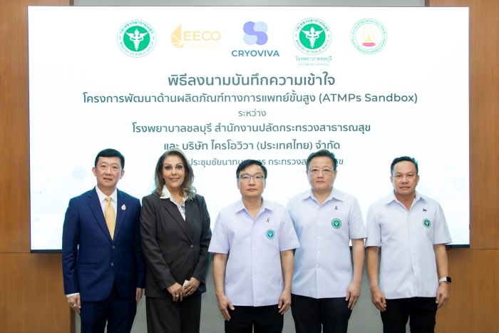 กระทรวงสาธารณสุขโดยโรงพยาบาลชลบุรี ลงนามบันทึกข้อตกลงความเข้าใจ (MOU) โครงการพัฒนาด้านผลิตภัณฑ์ทางการแพทย์ชั้นสูง (ATMPs Sandbox) ร่วมกับภาคเอกชน โดย บริษัท ไครโอวิวา (ประเทศไทย) จำกัด เพื่อพัฒนา “เขตส่งเสริมเศรษฐกิจพิเศษด้านการแพทย์และสุขภาพครบวงจร” ในพื้นที่โรงพยาบาลชลบุรี ภายใต้ EEC มุ่งยกระดับประเทศไทยสู่ศูนย์กลางการแพทย์ขั้นสูง