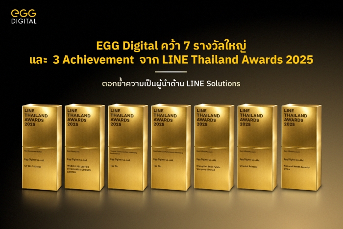 “เอ้ก ดิจิทัล” (EGG Digital) ตอกย้ำบทบาทผู้นำด้าน MarTech และ Data บนแพลตฟอร์ม LINE ประกาศความสำเร็จพาแบรนด์พาร์ทเนอร์คว้า 7 รางวัลใหญ่ และ 3 รางวัล Achievement จากเวที LINE Thailand Awards 2025 ความสำเร็จครั้งนี้สะท้อนถึงความสามารถของ EGG Digital ในการยกระดับ LINE Ecosystem สู่เครื่องมือการตลาดดิจิทัลที่ทรงพลัง ชูจุดแข็งผสานพลัง Data, AI และ EGG ONE PLATFORM เข้ากับโซลูชันของ LINE เพื่อสร้างการสื่อสารและการตลาดแบบ Personalize Automation ครบวงจร ที่เชื่อมโยงทุกทัชพอยท์ของลูกค้าเข้ากับแบรนด์อย่างมีประสิทธิภาพ พร้อมยกระดับการมีส่วนร่วม และเปลี่ยนการสื่อสารให้กลายเป็นผลลัพธ์ทางธุรกิจที่วัดผลได้จริง