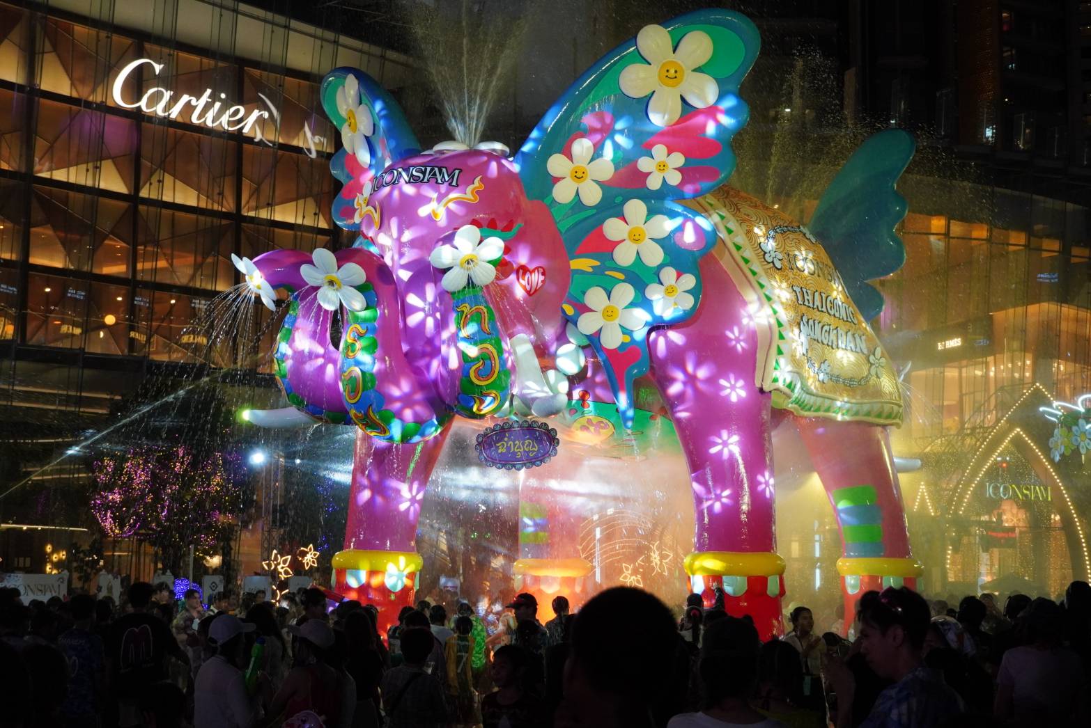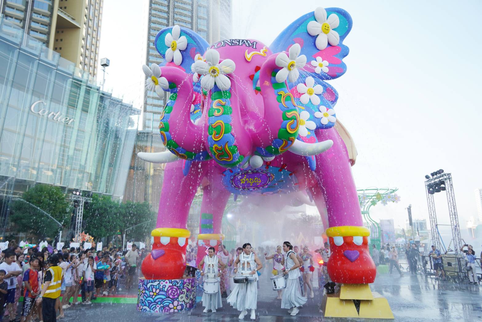THAICONIC WATER FESTIVAL สาดความสุข สนุกสุดเหวี่ยงกับประสบการณ์เล่นน้ำสงกรานต์ริมแม่น้ำเจ้าพระยาที่นำ “ช้าง” สัญลักษณ์ของประเทศไทย มาตีความใหม่เป็นแลนด์มาร์กแห่งการเฉลิมฉลองผ่านช้างยักษ์พ่นน้ำ เป็น Water Landmark ขนาดใหญ่สูง 9 เมตร ผลงาน Art Collaboration จากศิลปิน Dee SweetDrug Studio โดยมีชื่อว่า “ฉ่ำบุญและรินสุข นอกจากนี้ไอคอนสยามยังใส่ใจในความปลอดภัยในการเล่นน้ำของเด็กและทุกคนในครอบครัว จัด Kids Zone โซนพิเศษสำหรับเด็กเล็กเพื่อให้ผู้ปกครองสามารถดูแลบุตรหลานได้อย่างทั่วถึง พร้อมกันนี้ยังอำนวยความสะดวกให้กับผู้ที่มาเล่นน้ำสงกรานต์ด้วยโซนเป่าแห้งพลังงานสะอาดจาก Solar Cell เพื่อให้ทุกท่านสามารถใช้เวลากับครอบครัวหลังจากเล่นน้ำได้ภายในไอคอนสยามอีกด้วย