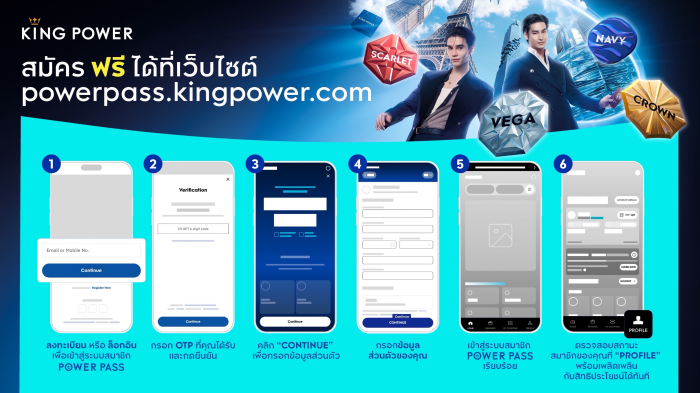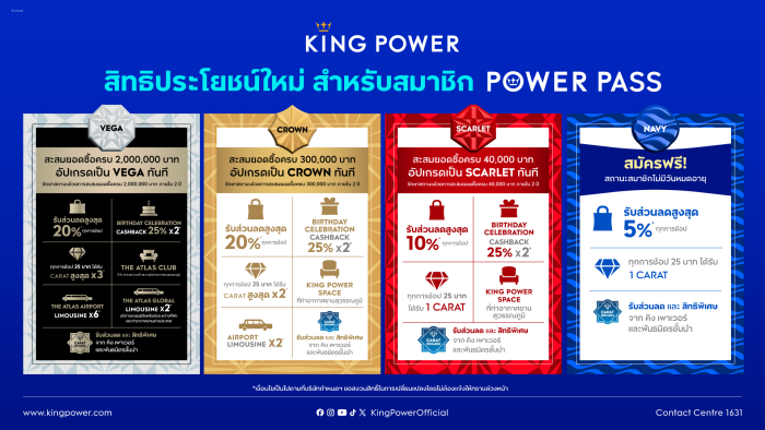 เปิดประตูให้ทุกประสบการณ์ของคุณ…สู่โลกที่เป็นไปได้มากกว่า สามารถสมัครสมาชิก “POWER PASS” ระบบสมาชิกรูปแบบใหม่จาก คิง เพาเวอร์ ฟรี! ได้ง่าย ๆ ตั้งแต่วันนี้ ที่เว็บไซต์ powerpass.kingpower.com, สมัครผ่าน LINE Official Account : @kingpower หรือ โทร.1631 คลิกเพื่อตรวจสอบสิทธิประโยชน์ และยอดซื้อสะสมได้ที่ powerpass.kingpower.com
