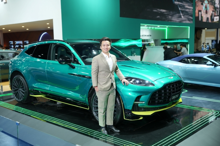 บูธ แอสตัน มาร์ติน นำเสนอเรื่องราวของแบรนด์ที่เปี่ยมด้วยดีเอ็นเอของมอเตอร์สปอร์ต และได้แรงบันดาลใจจากเทคโนโลยีในสนามแข่ง ถ่ายทอดความเชื่อมโยงระหว่างโลกของการแข่งขัน และยนตรกรรมระดับอัลตรา-ลักชัวรี่ ควบคู่กับการอำลาบทบาทของ แอสตัน มาร์ติน ดีบีเอ็กซ์707 เอเอ็มอาร์ (DBX707 AMR) ที่ใช้เป็นรถสำหรับทีมแพทย์ในการแข่งฟอร์มูลาวัน (F1 Medical Car) อีกทั้งยังได้รับการสนับสนุนจากพันธมิตรทางธุรกิจระดับโลก Glenfiddich และ Elemis สรรสร้างกิจกรรมพิเศษ เพื่อนำเสนอประสบการณ์ลักชัวรี่ไลฟ์สไตล์เหนือระดับ