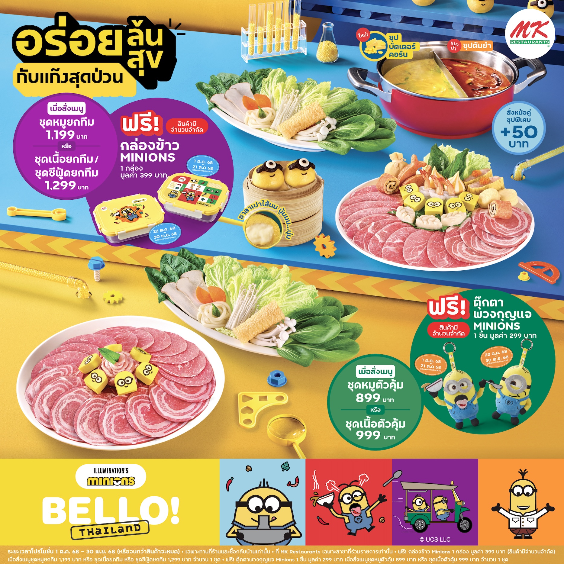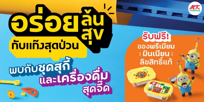 ปฎิบัติการณ์ป่วนทั่วไทย MK Restaurants เสิร์ฟกลยุทธ์ Brand Collaboration กับมินเนี่ยน คาแรกเตอร์ดังระดับโลก ร่วมแคมเปญ “อร่อยล้นสุขกับแก๊งสุดป่วน” ปล่อยเมนูพิเศษให้ทานได้ที่ร้านทั้งสาขาปกติ และสาขาที่ร่วมรายการ โปรโมชั่น คุ้มเกินคุ้ม 299 บาท ทั้งเมนู ลูกชิ้น Minions, ซาลาเปา Minions และเครื่องดื่มสีสันสดใส สร้างประสบการณ์ใหม่ ทั้งยังมีของพรีเมียมคอลเลคชันพิเศษน่าสะสมอีกด้วย