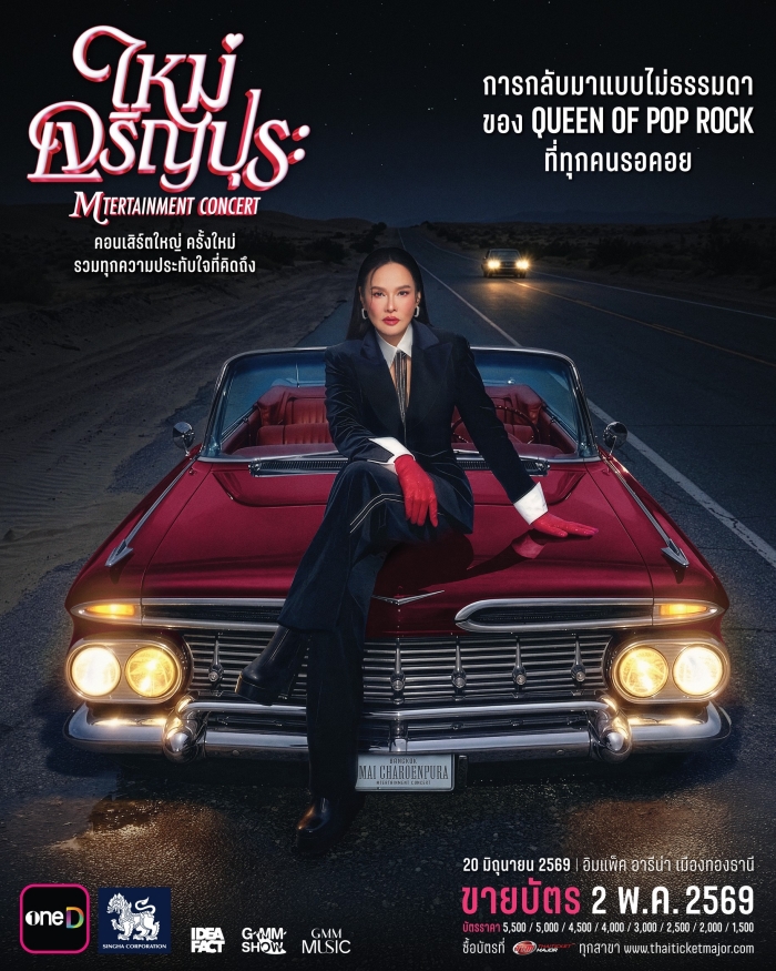 ห่างหายจากคอนเสิร์ตใหญ่ไปนานเกือบ 10 ปี การกลับมาครั้งนี้ของควีนออฟป็อปร็อกเมืองไทย ‘ใหม่ เจริญปุระ’ จึงไม่ใช่แค่คอนเสิร์ต แต่คือการคัมแบ็กแบบยกเครื่องความสนุกครั้งใหญ่กับ ‘ใหม่ เจริญปุระ MTERTAINMENT CONCERT’ (ใหม่ เจริญปุระ เอ็มเตอร์เทนเมนท์ คอนเสิร์ต) คอนเสิร์ตเดี่ยวที่ถูกออกแบบให้แตกต่างจากทุกโชว์ที่เคยมีมาก่อน เพราะครั้งนี้จะเห็นตัวตนทุกมุมที่รวมทุกเสน่ห์ของใหม่ เจริญปุระ เอาไว้แบบเต็มพิกัด เรียกว่าครบรสที่สุด ทั้งสนุก สุข เศร้า เหงา ซึ้ง พร้อมขนทุกเพลงฮิตมาให้แฟนๆ ได้หายคิดถึง เตรียมควักหัวใจออกมาให้สุดฤทธิ์สุดเดชกันอีกครั้ง ในวันเสาร์ที่ 20 มิถุนายน 2569 ณ อิมแพ็ค อารีน่า เมืองทองธานี จัดโดย ‘IDEA FACT’ (ไอเดีย แฟค) ภายใต้ ‘GMM SHOW’ (จีเอ็มเอ็ม โชว์) ทีมผู้จัดคอนเสิร์ตคุณภาพที่อยู่เบื้องหลังโชว์ระดับตำนานของยุค 90’s มาแล้วมากมาย แค่ปล่อยโปสเตอร์คอนเสิร์ตออกมาก็เรียกเสียงฮือฮาได้ทันที เพราะทุกลุคเผยภาพของ ใหม่ เจริญปุระ ในโหมดที่ทั้งแซ่บ เท่ และสนุกแบบตัวแม่ สะท้อนบรรยากาศความเฮฮาและพลังปาร์ตี้ที่กำลังจะเกิดขึ้นบนเวทีครั้งนี้อย่างชัดเจน