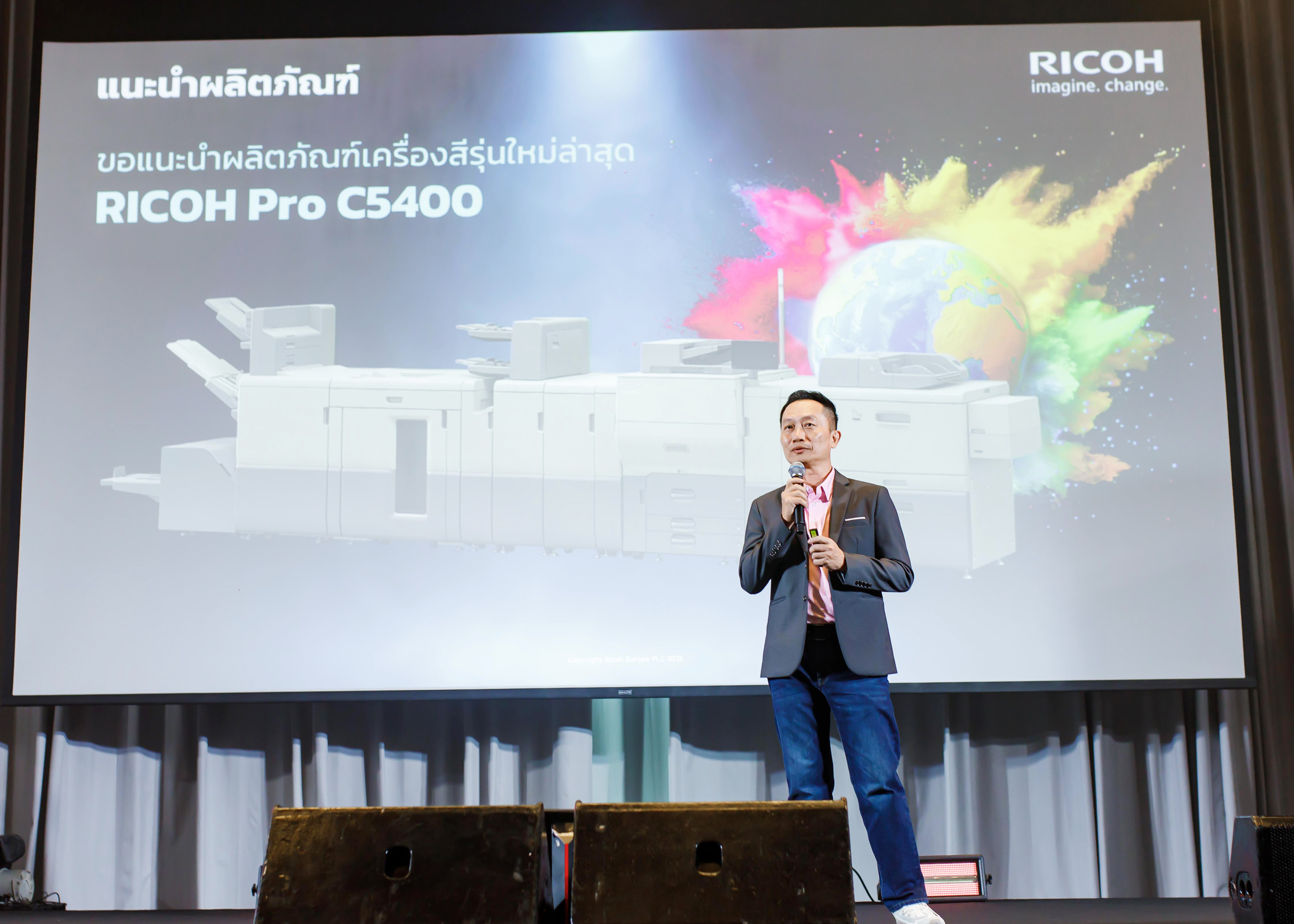 บริษัท ริโก้ (ประเทศไทย) จำกัด จัดงานเปิดตัวเครื่องพิมพ์ดิจิทัลระดับโปรดักชันรุ่นใหม่ล่าสุด “Ricoh Pro C5400S Series” อย่างเป็นทางการภายใต้คอนเซ็ปต์ “Where Color Meets Perfection – ที่สุดของสีสันสู่ความสมบูรณ์แบบ” ณ ห้องแกรนด์บอลรูม โรงแรมโฟร์ซีซั่นส์ กรุงเทพฯ ริมแม่น้ำเจ้าพระยา เมื่อวันพฤหัสบดีที่ 9 ตุลาคม 2568 ที่ผ่านมา