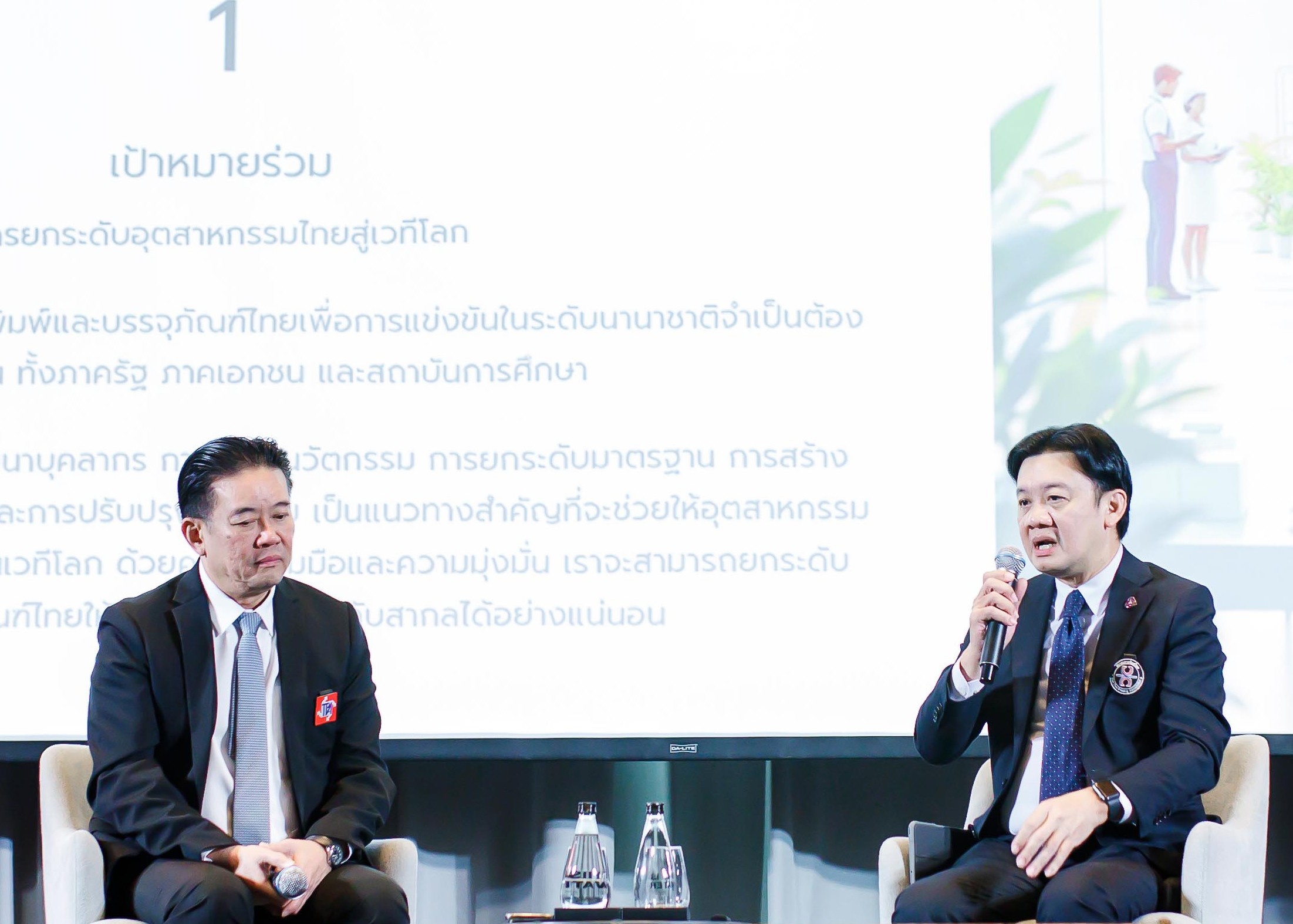 ไฮไลต์ช่วงแรกของงานเริ่มด้วยการเสวนาในหัวข้อ “The Power of AI in Printing & Packaging” โดยได้รับเกียรติจากสองนายกสมาคมชั้นนำ ได้แก่ คุณพงศ์ธีระ พัฒนพีระเดช นายกสมาคมการพิมพ์ไทย และคุณวิวัฒน์ อุตสาหจิต นายกสมาคมการบรรจุภัณฑ์ไทย ที่ร่วมแลกเปลี่ยนมุมมองถึงบทบาทของเทคโนโลยี AI ที่จะเข้ามาปฏิวัติอุตสาหกรรมการพิมพ์และบรรจุภัณฑ์ในอนาคต โดยชี้ให้เห็นว่า “AI จะช่วยเพิ่มประสิทธิภาพ ความแม่นยำ และความหลากหลายในงานออกแบบ ตอบโจทย์ทุกความต้องการของลูกค้าได้อย่างไร้ขีดจำกัด”