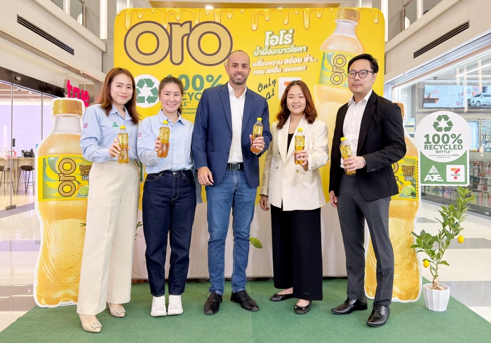 นางสาวนริศรา บำรุงศิริ ผู้จัดการทั่วไป สำนัก Merchandising – Packaged Beverage บริษัท ซีพี ออลล์ จำกัด (มหาชน) กล่าวเสริมว่า “การร่วมพัฒนาผลิตภัณฑ์ ‘โอโร่’ สอดคล้องกับการเปลี่ยนผ่านสู่เชิงรุกด้วย CP Sustainability Center of Excellence (COE) ที่ขับเคลื่อนเป้าหมายความยั่งยืน 3 ด้านผ่านกลยุทธ์ ‘2 ลด 4 สร้าง 1 DNA’ (สิ่งแวดล้อม สังคม และบรรษัทภิบาล) ของเรา ในการช่วยลดผลกระทบเชิงลบต่อสิ่งแวดล้อม เพื่อลดการปล่อยก๊าซเรือนกระจกสู่ชั้นบรรยากาศของโลก รวมถึงสอดรับกับพฤติกรรมที่เปลี่ยนแปลงไปของผู้บริโภคยุคปัจจุบัน ที่เริ่มมองหาผลิตภัณฑ์ที่ไม่เพียงรสชาติดีและคุ้มค่า แต่ยังต้องมีกระบวนการผลิตที่เป็นมิตรต่อสิ่งแวดล้อม ซึ่งการเปลี่ยนมาใช้บรรจุภัณฑ์ rPET 100% สามารถช่วยลดการปล่อยคาร์บอนได้สูงถึงร้อยละ 79 เมื่อเทียบกับการใช้พลาสติกแบบเดิม และช่วยสร้างทางเลือกใหม่ให้แก่ลูกค้าเซเว่น อีเลฟเว่น ทั่วประเทศได้เป็นอย่างดี”