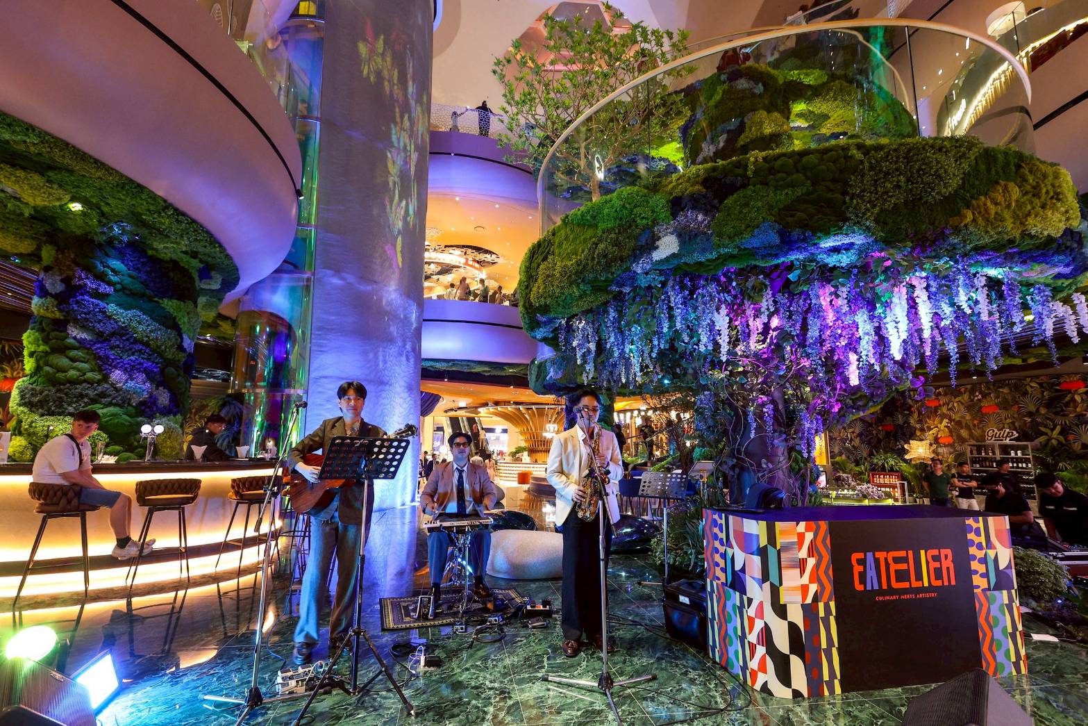 EATELIER สร้างสรรค์ภายใต้แนวคิด “Curation & Co-Creation” เป็นแพลตฟอร์มแห่งแรงบันดาลใจที่รวมพลังของเชฟระดับดาวมิชลิน ศิลปิน นักแสดง และไอคอนในวงการบันเทิงทั้งไทยและต่างประเทศ มาร่วมกันรังสรรค์ประสบการณ์แห่งรสชาติแบบเอ็กซ์คลูซีฟที่เชื่อมโยงศิลปะ ดนตรี และการออกแบบเข้าด้วยกันอย่างลงตัว พร้อมเติมเต็มอรรถรสแห่งการกิน–ดื่มด้วย Live Bands & DJs สร้างบรรยากาศแห่งความสนุกและชีวิตชีวา ทั้งกลางวันและกลางคืน สำหรับ Live Bands ชั้น 4 EATELIER แสดงทุกวัน วันละ 4 รอบ รอบละ 1 ชม. จันทร์-พฤหัสบดี, อาทิตย์ เวลา 14.00 น. / 16.00 น. / 18.00 น. / 20.00 น.และ ศุกร์ เสาร์ เวลา 12.00 น. / 14.00 น. / 16.00 น. / 18.00 น. สำหรับ DJs ชั้น 5 แสดงทุกศุกร์ เสาร์ เวลา 20.00-23.00 น.และอาทิตย์ เวลา19.00-22.00 น.