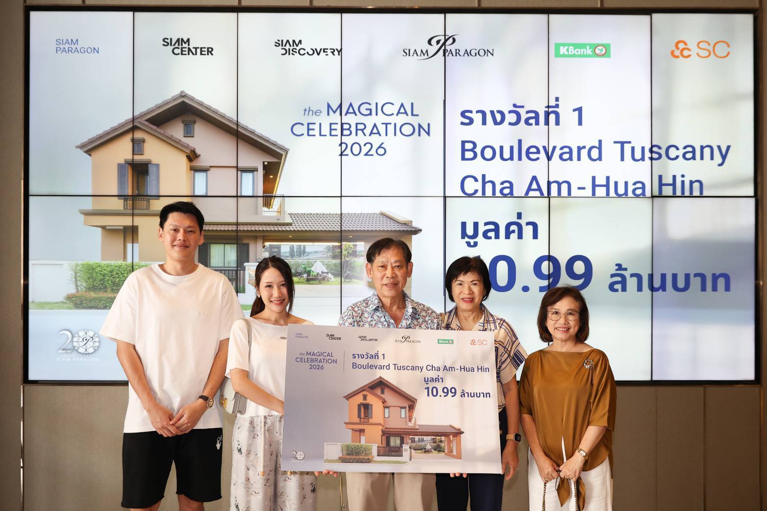 สยามพารากอน สยามเซ็นเตอร์ และสยามดิสคัฟเวอรี่ เดสติเนชั่นชั้นนำใจกลางกรุงเทพฯ ที่ครองใจลูกค้าชาวไทยและนักท่องเที่ยวจากทั่วโลก เดินหน้าส่งมอบประสบการณ์เหนือความคาดหมายอย่างต่อเนื่อง ผ่านการสร้างสรรค์แคมเปญการตลาดและสิทธิประโยชน์สุดเอ็กซ์คลูซีฟที่ตอบโจทย์ไลฟ์สไตล์ของลูกค้าในทุกมิติ โดยผนึกกำลังกับ SC มอบรางวัลใหญ่จากแคมเปญพิเศษ “The Magical Celebration 2026” ได้แก่ บ้านเดี่ยวสุดหรูจากโครงการ Boulevard Tuscany ชะอำ–หัวหิน มูลค่า 10.99 ล้านบาท เพื่อแทนคำขอบคุณแก่ลูกค้าคนสำคัญ และตอกย้ำความมุ่งมั่นในการรังสรรค์ประสบการณ์ที่มีคุณค่าและน่าประทับใจ ที่แตกต่างในทุกมิติ