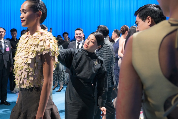 จากนั้นเสด็จทอดพระเนตรการแสดงแบบ “Sustainable Fashion Show” ที่ทรงร่วมสร้างสรรค์ผลงานแฟชั่นผ้าไทยร่วมกับ 30 ดีไซเนอร์ชั้นนำของประเทศ สร้างปรากฎการณ์ครั้งใหญ่ให้กับวงการแฟชั่นไทย และยกระดับผ้าไทยสู่สากลอย่างเต็มภาคภูมิ ไฮไลต์สำคัญของการแสดงแบบครั้งนี้คือแนวคิด “Sustainable Fashion” หรือแฟชั่นแห่งความยั่งยืน ผ่านการนำเสนอแฟชั่นผ้าไทยที่เป็นมิตรต่อสิ่งแวดล้อม ถ่ายทอดความงดงามวิจิตรบรรจง พร้อมเรื่องราวการเดินทางของเส้นใยธรรมชาติจากท้องถิ่นไทย สู่ผลงานการออกแบบตัดเย็บระดับโอต์กูตูร์ (Haute Couture) และสวมใส่ได้จริงในชีวิตประจำวัน รวม 66 ชุด ซึ่งพิสูจน์ที่ชัดเจนว่า “ผ้าไทย” ได้ก้าวข้ามขีดจำกัดเดิม ๆ สู่การเป็นผู้นำเทรนด์แฟชั่นโลกที่ยั่งยืน รวมทั้งแสดงให้เห็นว่า อุตสาหกรรมแฟชั่นไทยสามารถก้าวหน้าควบคู่ไปกับการรักษาสิ่งแวดล้อมและการกระจายรายได้สู่ชุมชนอย่างทั่วถึง โดยรายชื่อแบรนด์ที่ร่วมสร้างประวัติศาสตร์บนรันเวย์ในครั้งนี้ ได้แก่ SIRIVANNAVARI, KAI, TIRAPAN, PISIT, ATELIER PICHITA, NAGARA, THEATRE, TUBE GALLERY, ASAVA, WISHARAWISH, PYVET, CHAI GOLD LABEL, VATIT ITTHI, HOOK’S, ISSUE, MILIN, VICKTEERUT, JANESUDA, TANDT, ARCHIVE026, DISAYA, FAH CHACK WO+MAN, IRADA, LANDMEE, SHONE PUIPIA, MUSE, PAIN KILLER, SRETSIS, PATINYA, DRY CLEAN ONLY และ KLOSET