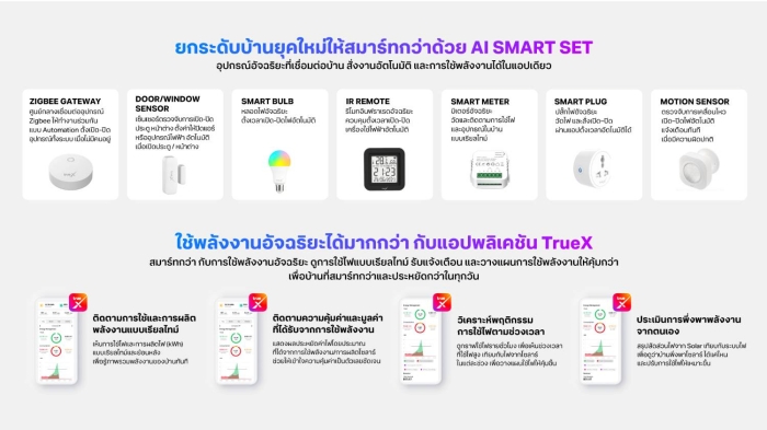 • Intelligence through AI: ยกระดับจากโซลาร์ทั่วไปสู่ระบบอัจฉริยะด้วย AI Smart Set และแอปพลิเคชัน TrueX ที่เชื่อมต่ออุปกรณ์ภายในบ้านเข้าด้วยกัน